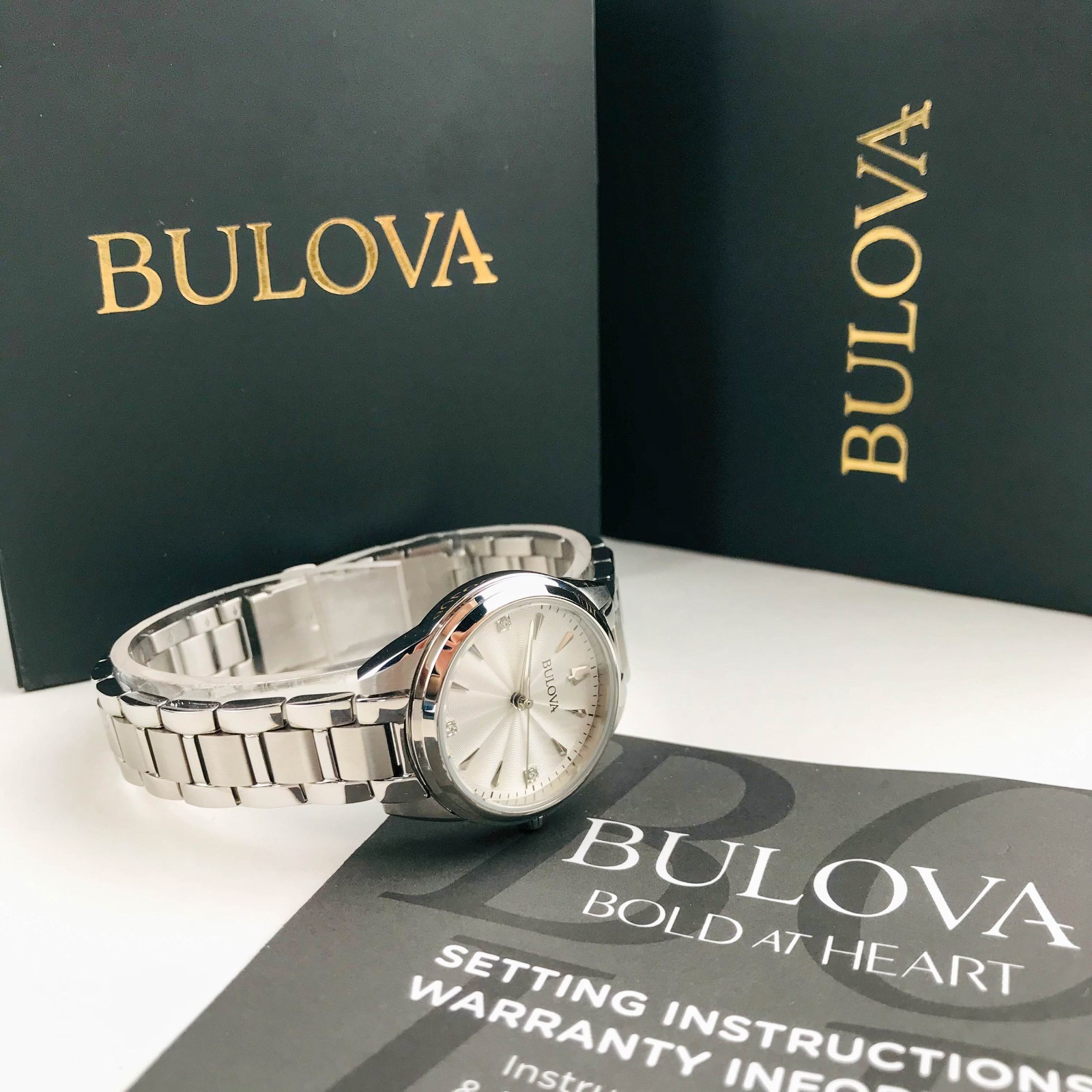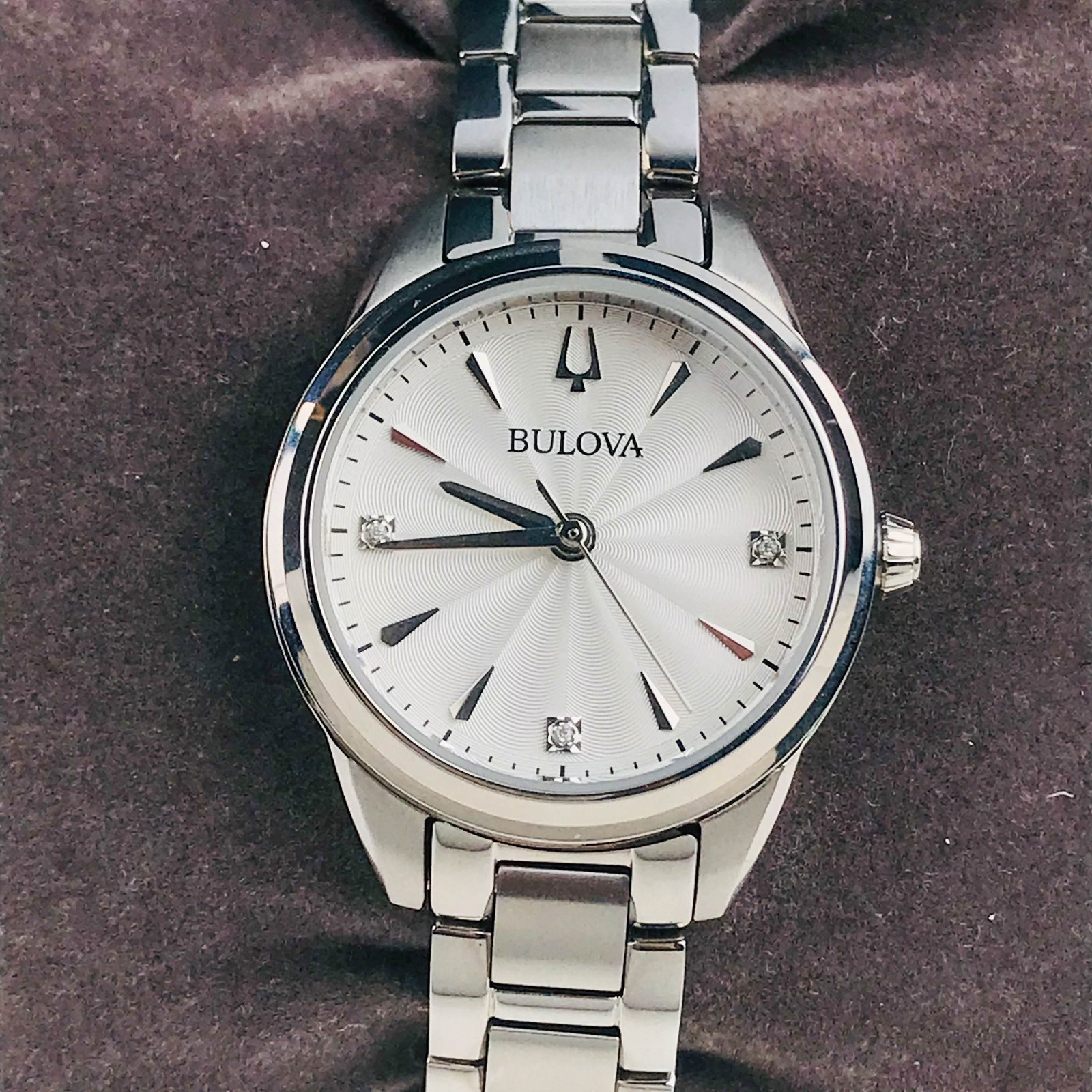 Bulova Sutton Ladies 96P219 Diamond Accent Silver Dial 28mm Quartz Steel Watch