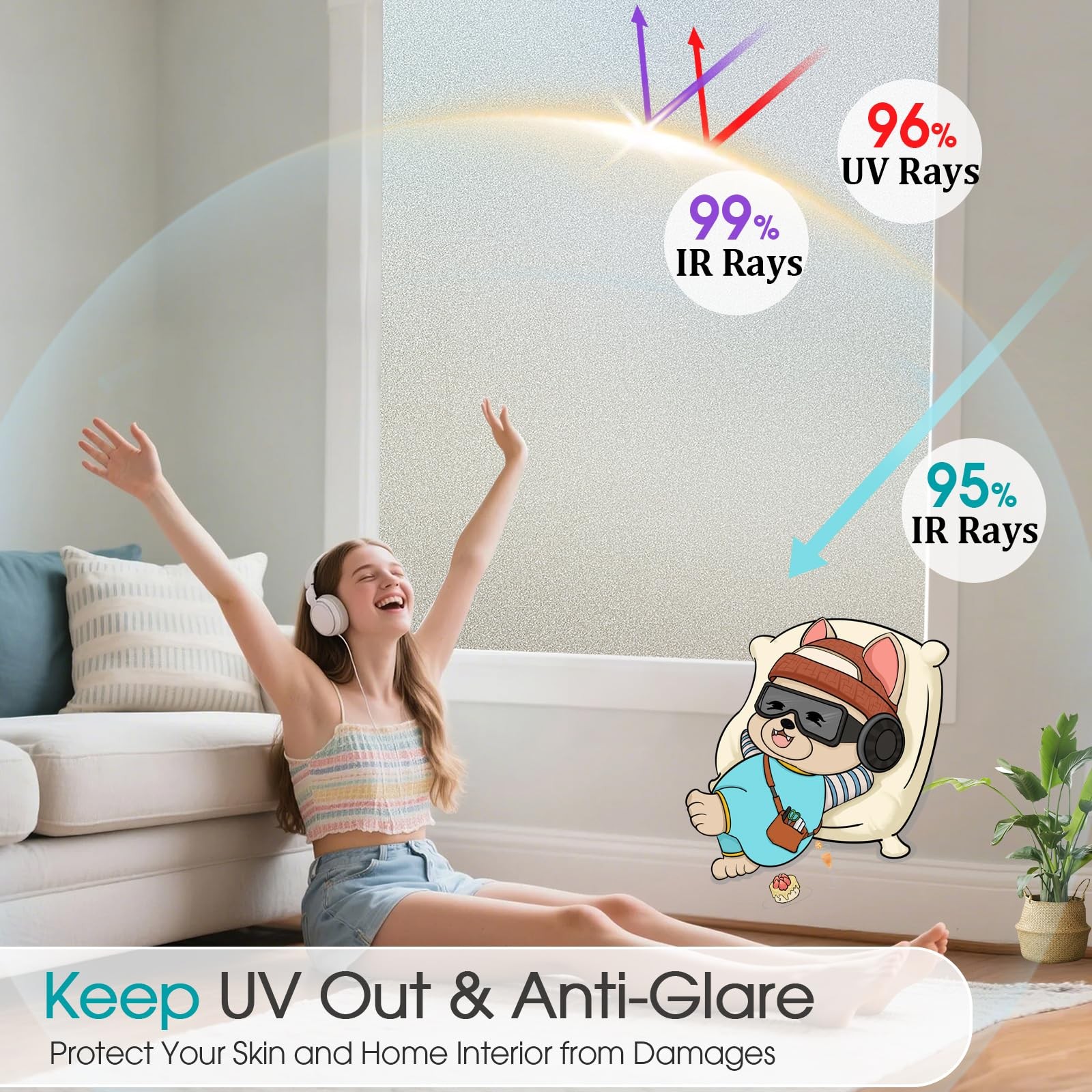 Window Privacy Film Frosted Glass Static Clings, Decorative Bathroom Door Pri...
