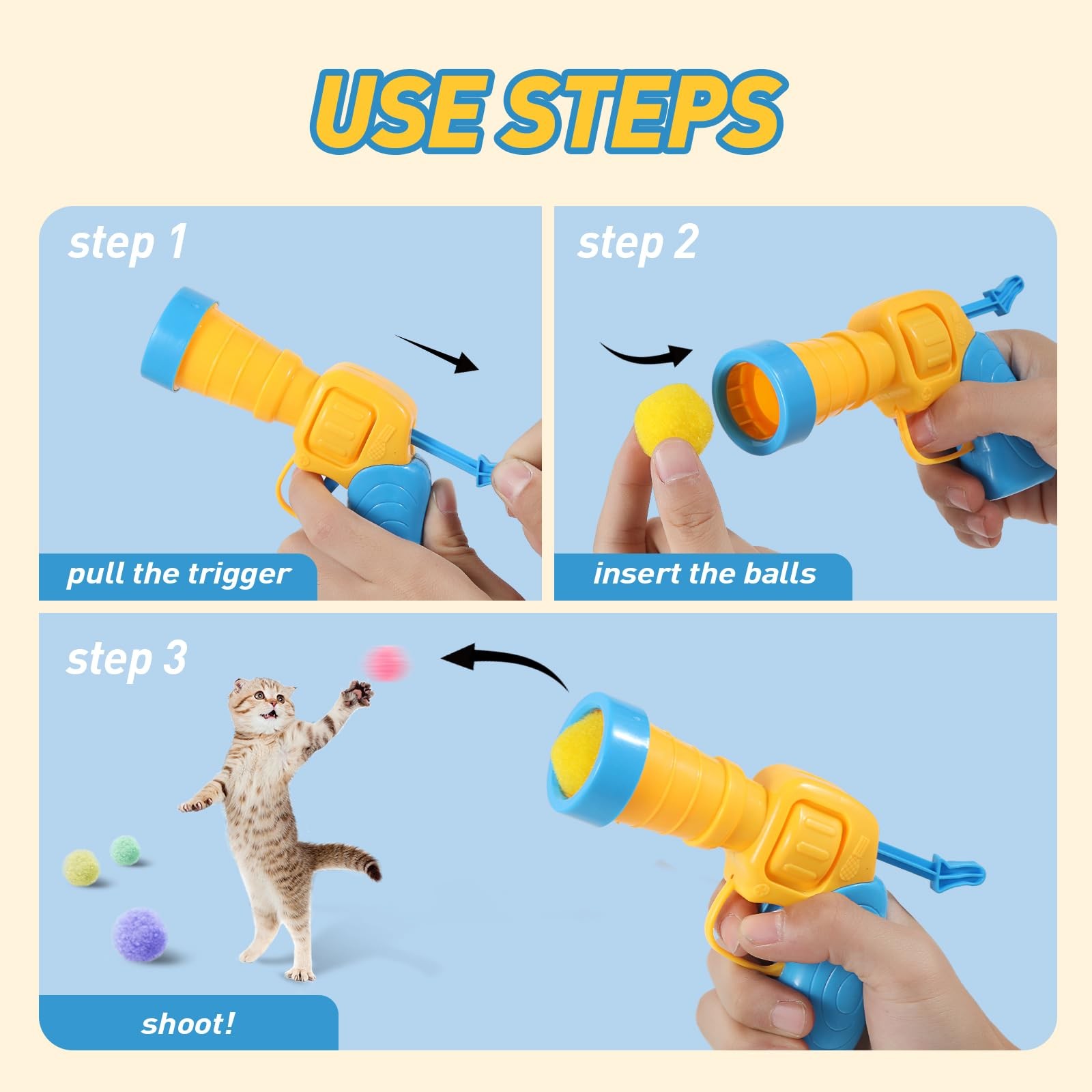 как выглядит JPTECY Cat Ball Toy Launcher Gun 34pcs Toys for Indoor Cats Multicolored фото
