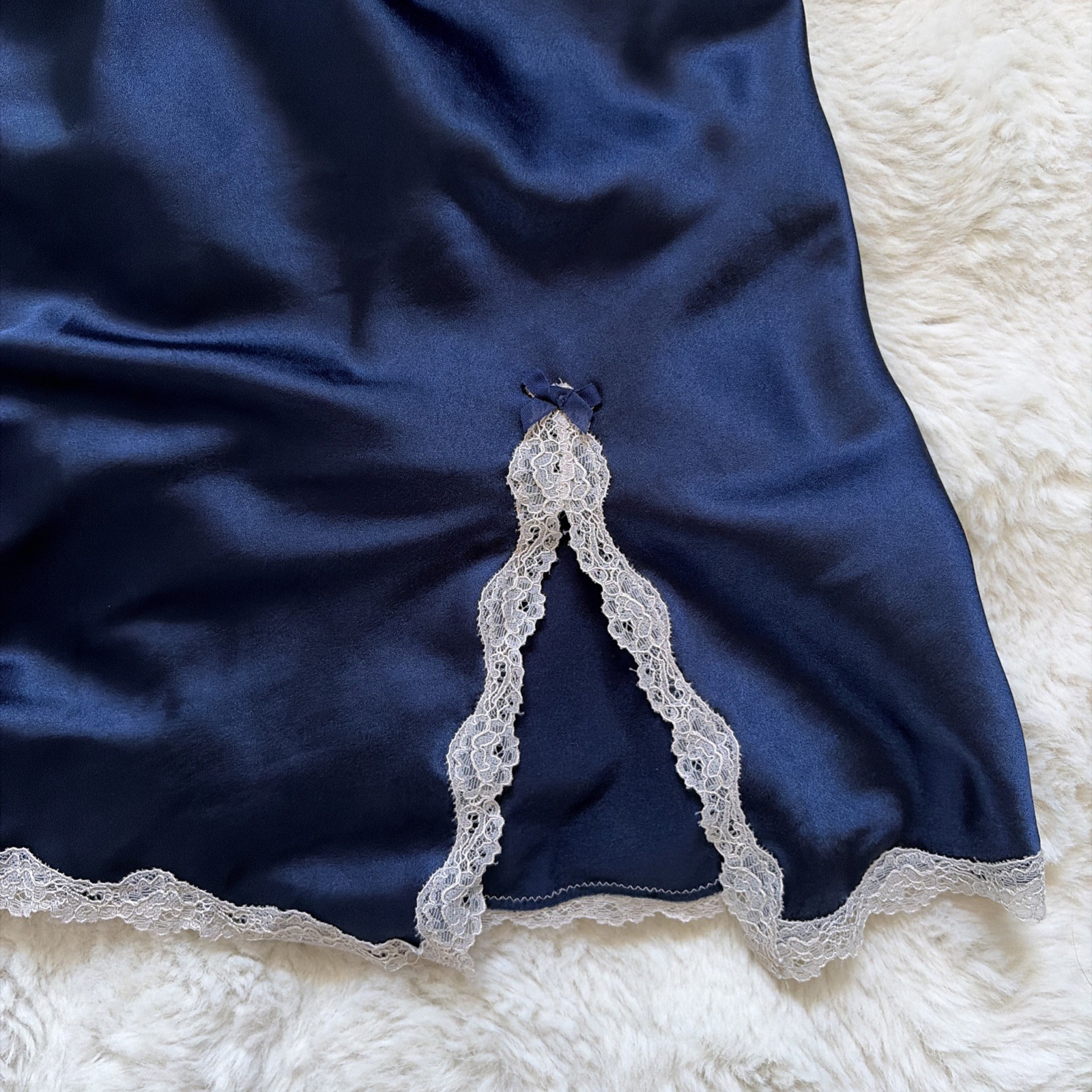 как выглядит Victoria Secret Strappy Navy White Lace Slit Leg Slip Dress 100 Polyester S фото