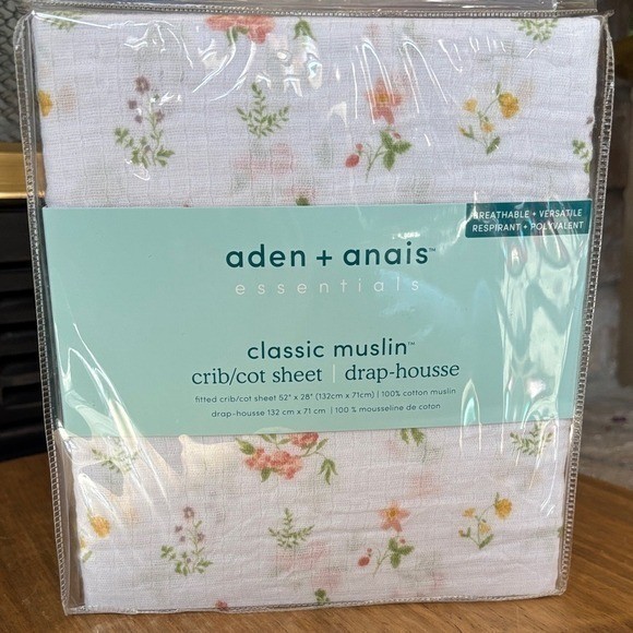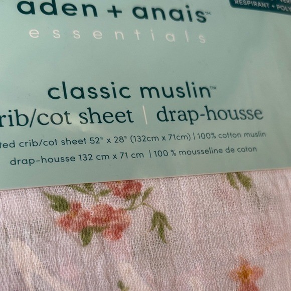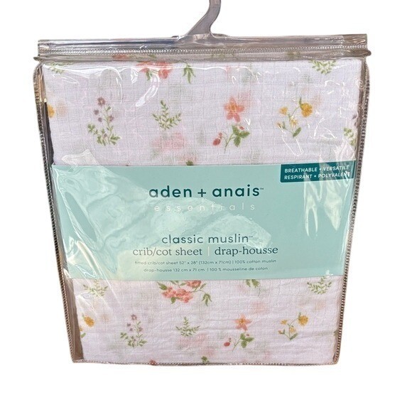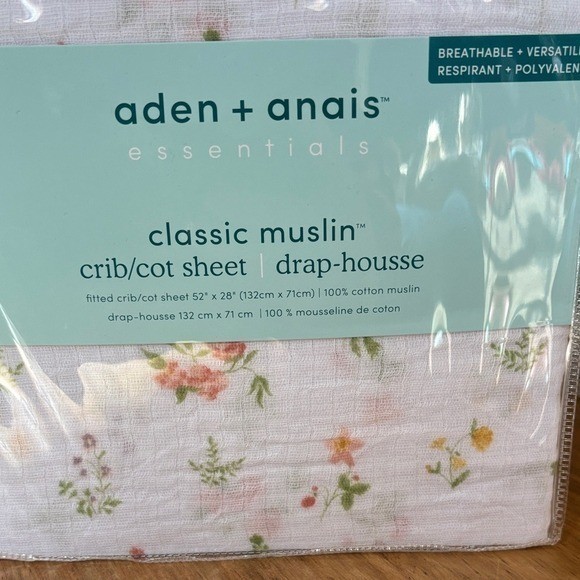 Aden Anais 100 Cotton Muslin Classic Fitted Crib Sheet/Drap White Floral New
