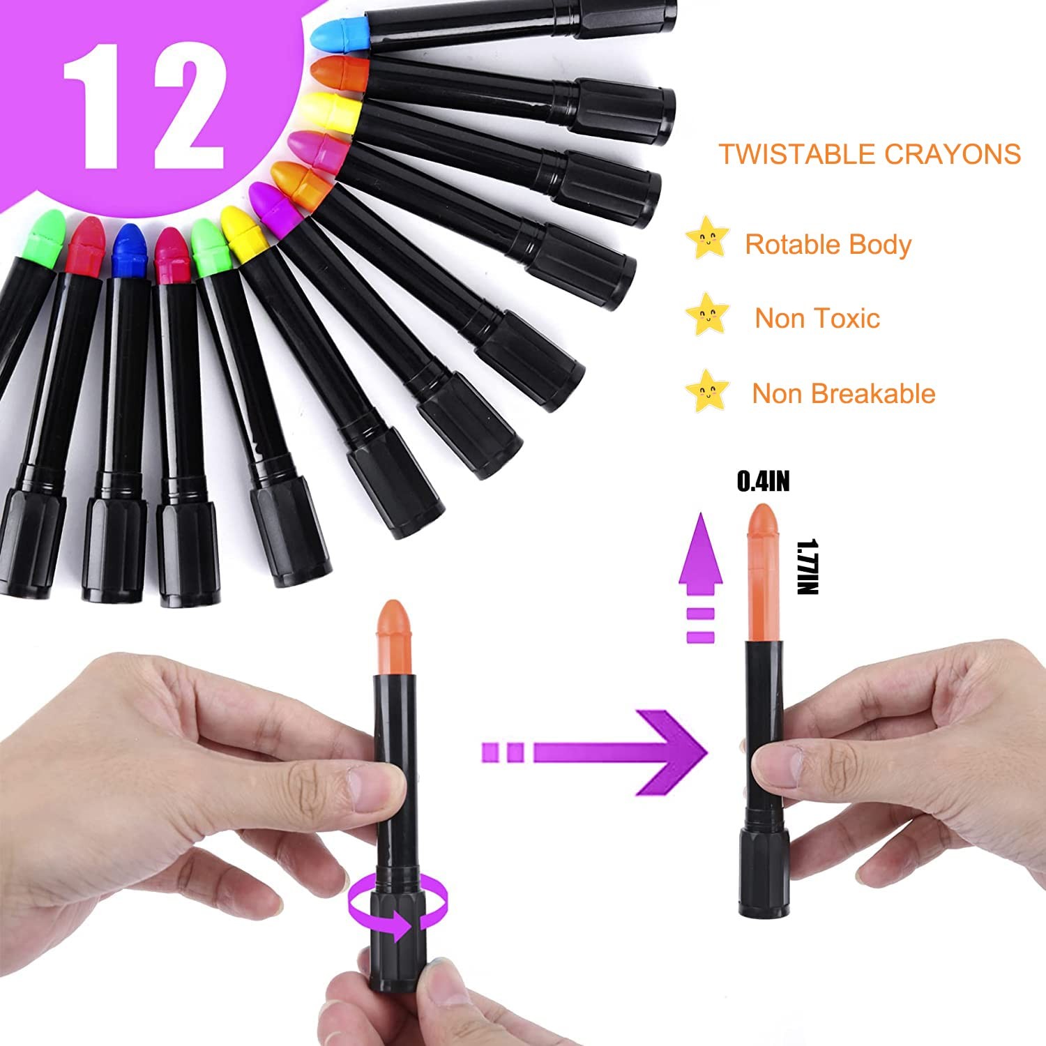 12 Colors Glow Face Body Paint, UV Crayons Makeup Glow in The Black Light Body P