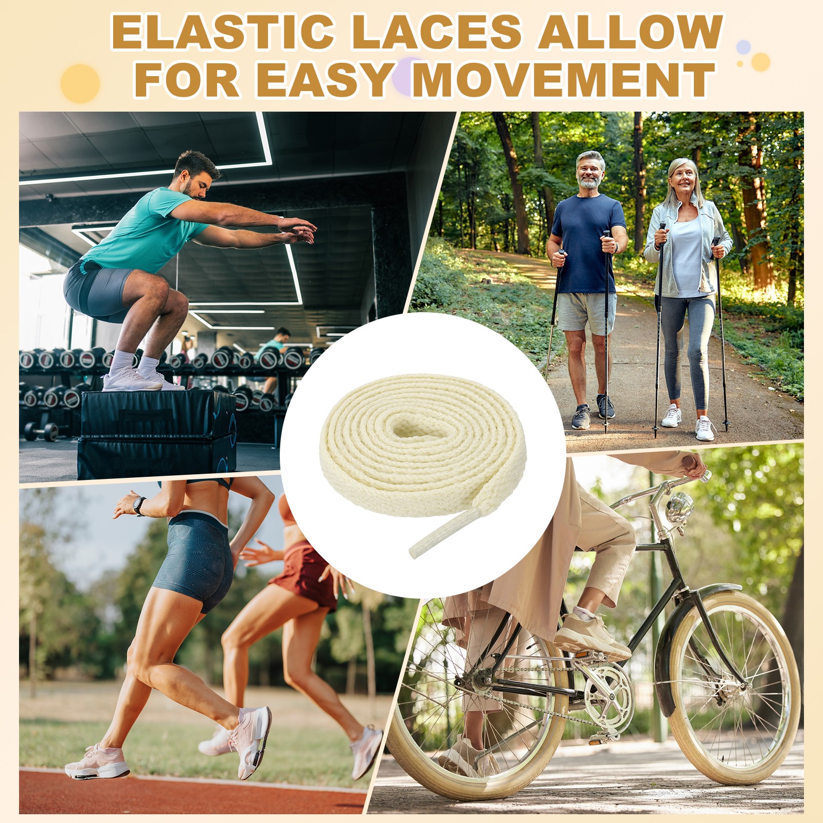 как выглядит 4 Pairs Flat Shoe Laces 5/16" x 80" Polyester Sneaker Shoestring, Beige фото