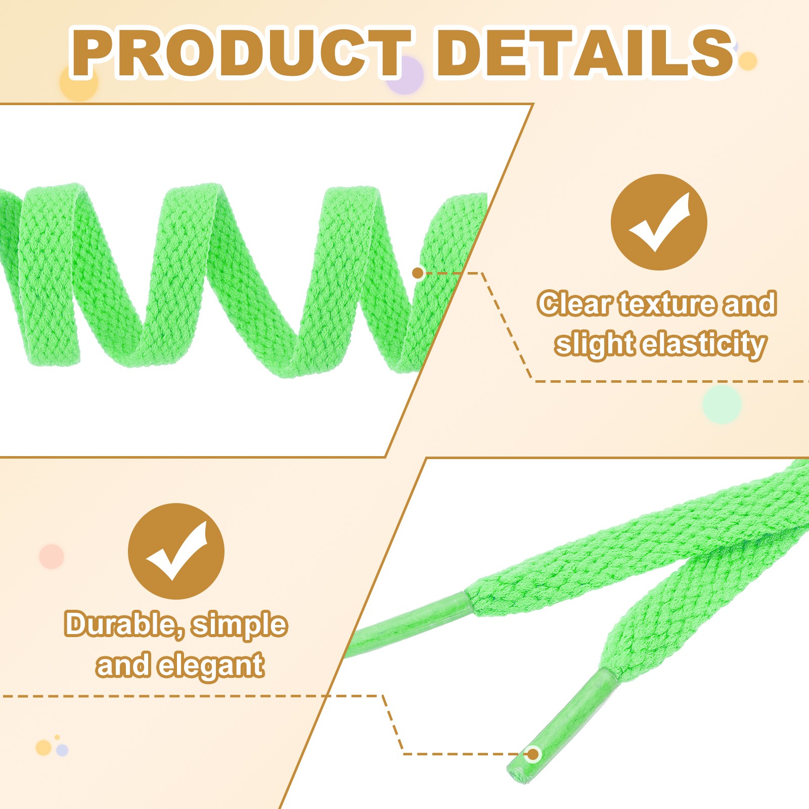 как выглядит 4 Pairs Flat Shoe Laces 5/16" x 100" Polyester Sneaker Shoestring, Green фото
