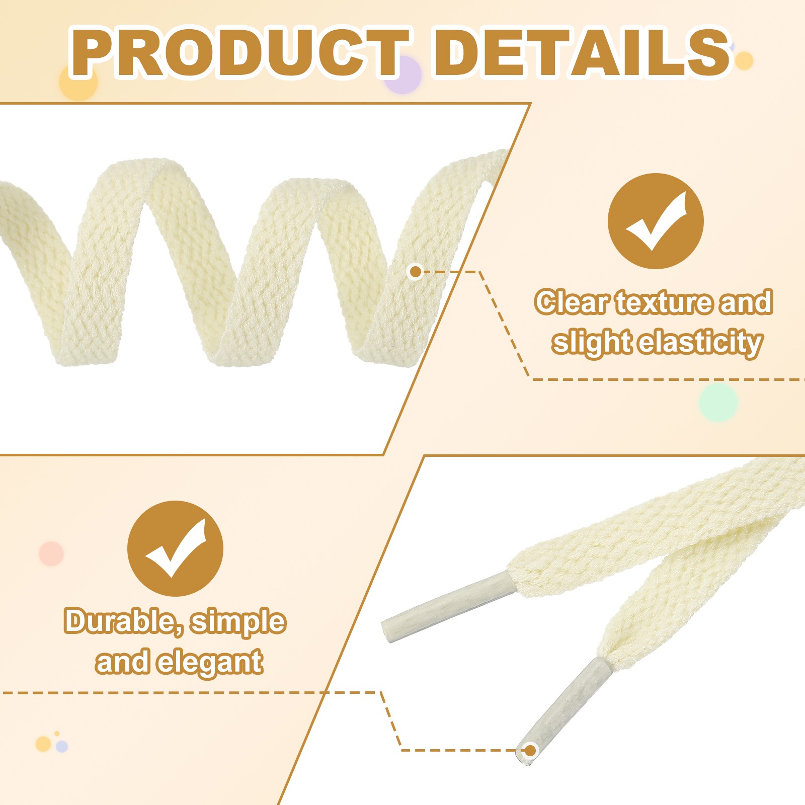 как выглядит 4 Pairs Flat Shoe Laces 5/16" x 180" Polyester Sneaker Shoestring, Beige фото