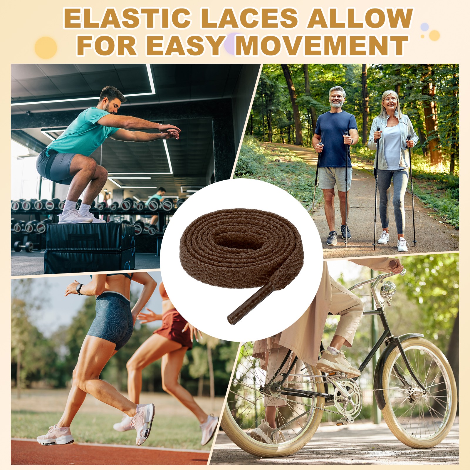как выглядит 4 Pairs Flat Shoe Laces 5/16" x 50" Polyester Sneaker Shoestring, Brown фото