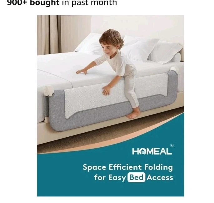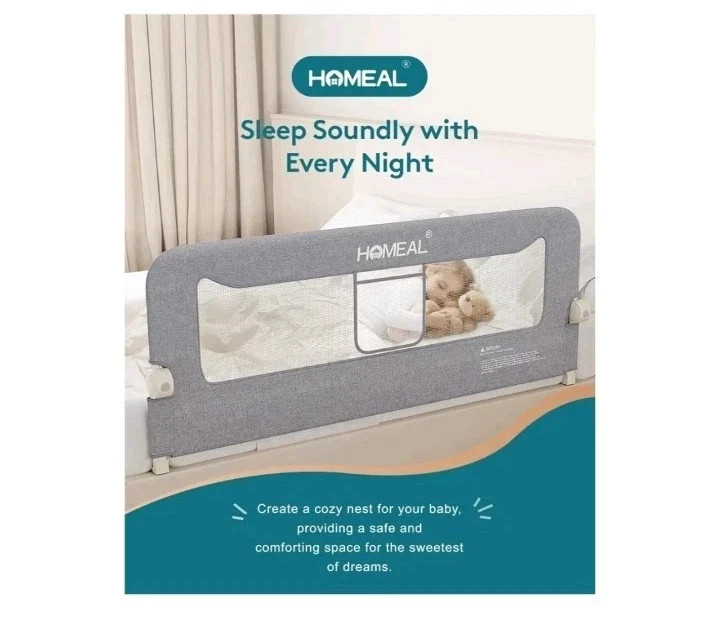 Bed Rail for Toddlers, 59x24 Swing down Baby Bed Rail Guard, U-shape base grey