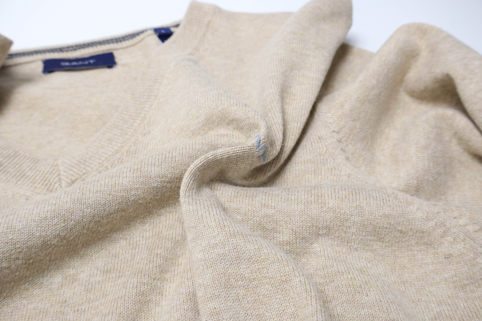как выглядит GANT Jumper Mens LARGE Beige V-Neck Logo Knitted Pullover фото