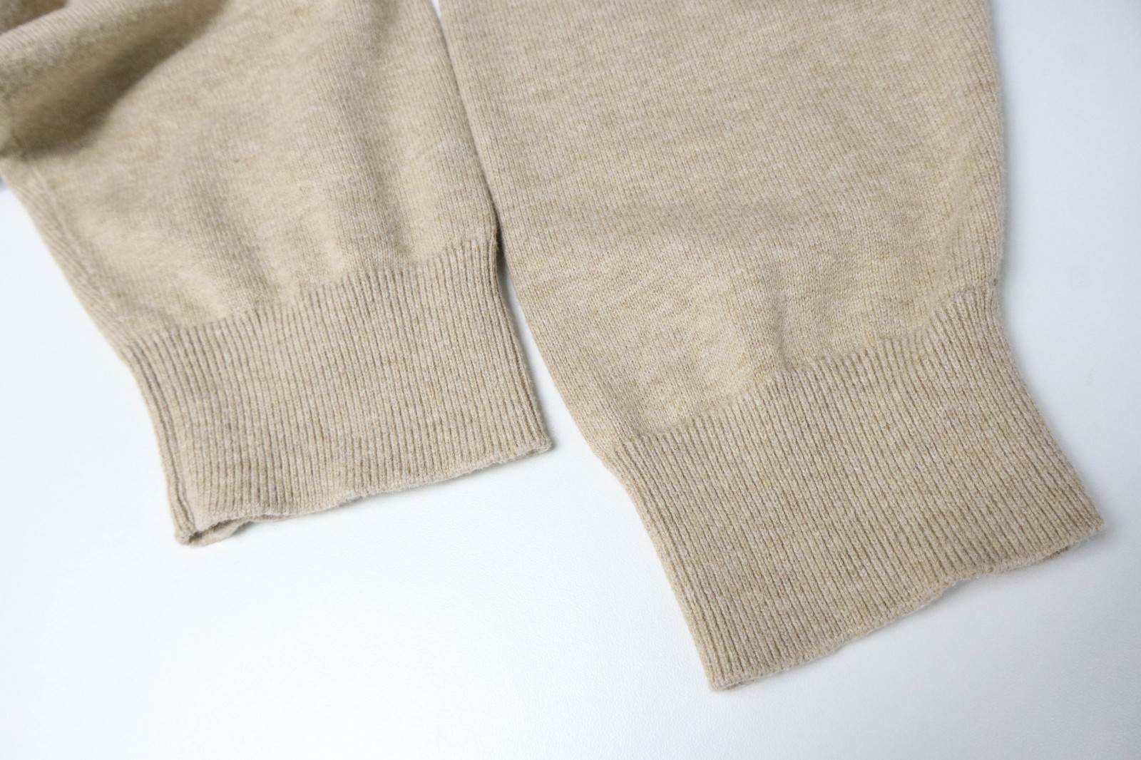 GANT Jumper Men's LARGE Beige V-Neck Logo Knitted Pullover