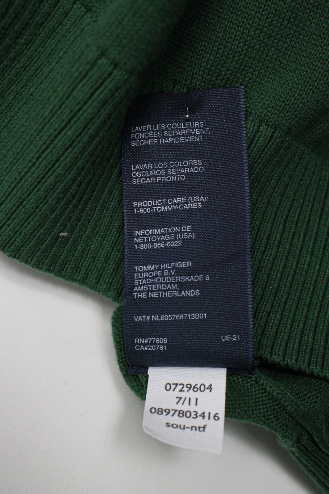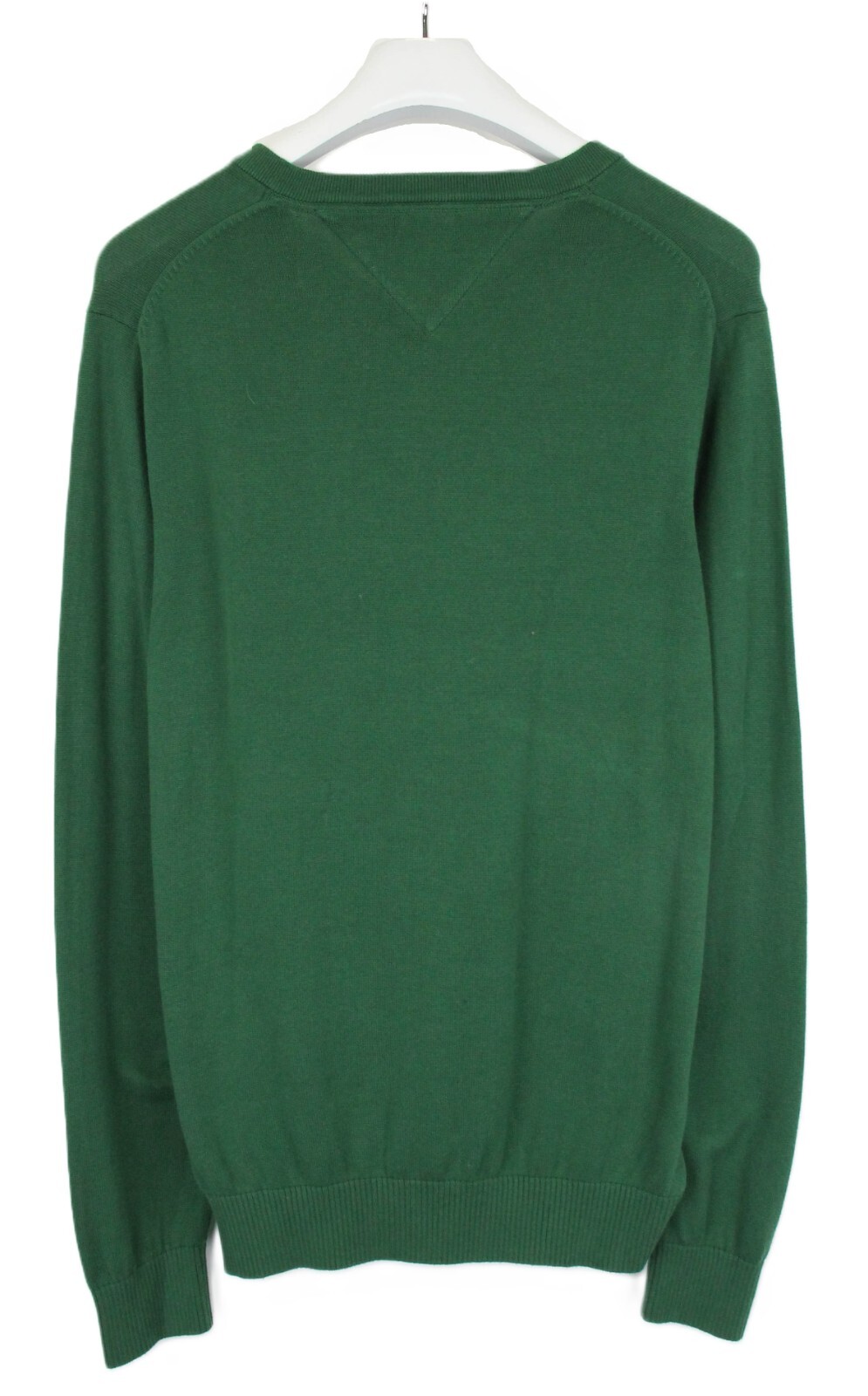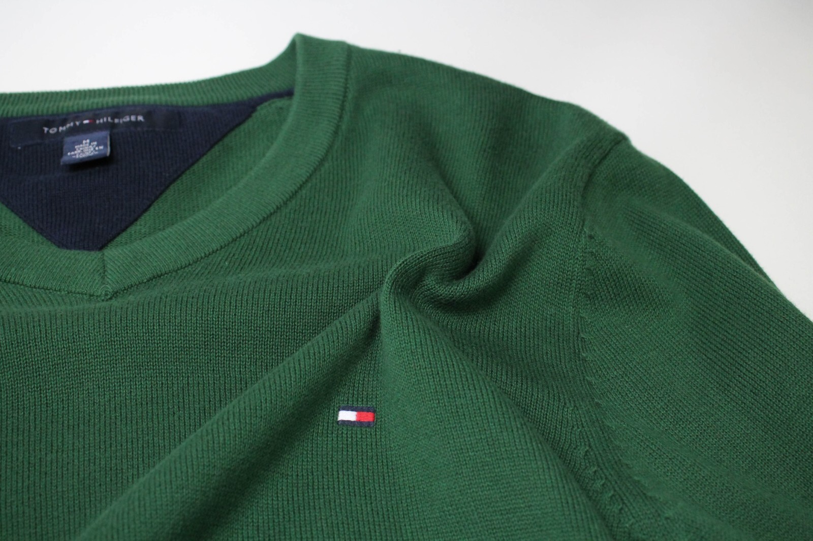 как выглядит TOMMY HILFIGER Jumper Mens MEDIUM V-Neck Pullover Green Logo Tight Knit фото