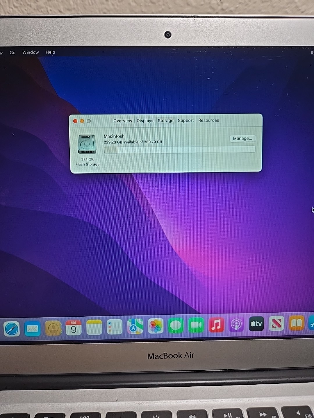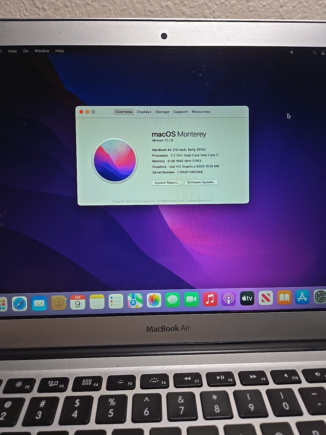 MacBook Air A1466/2015y/ 13/i7-5650U/8Gb/Ssd 250Gb/OS Monterey NO AC, 20