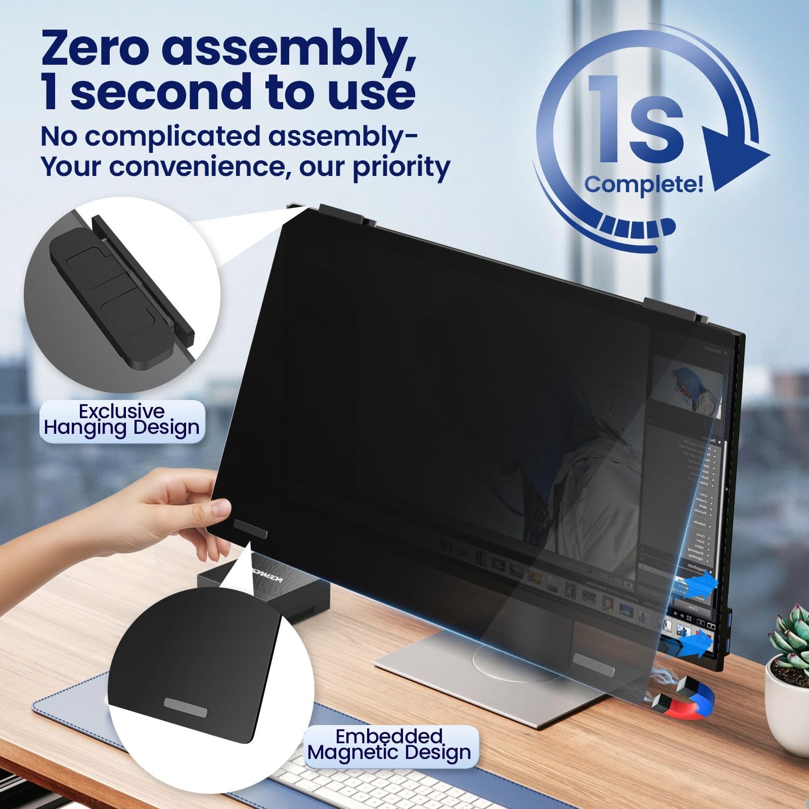 Magnetic 24 Inch Privacy Screen Hanging for Computer Monitor 16:9 A... Fast Ship