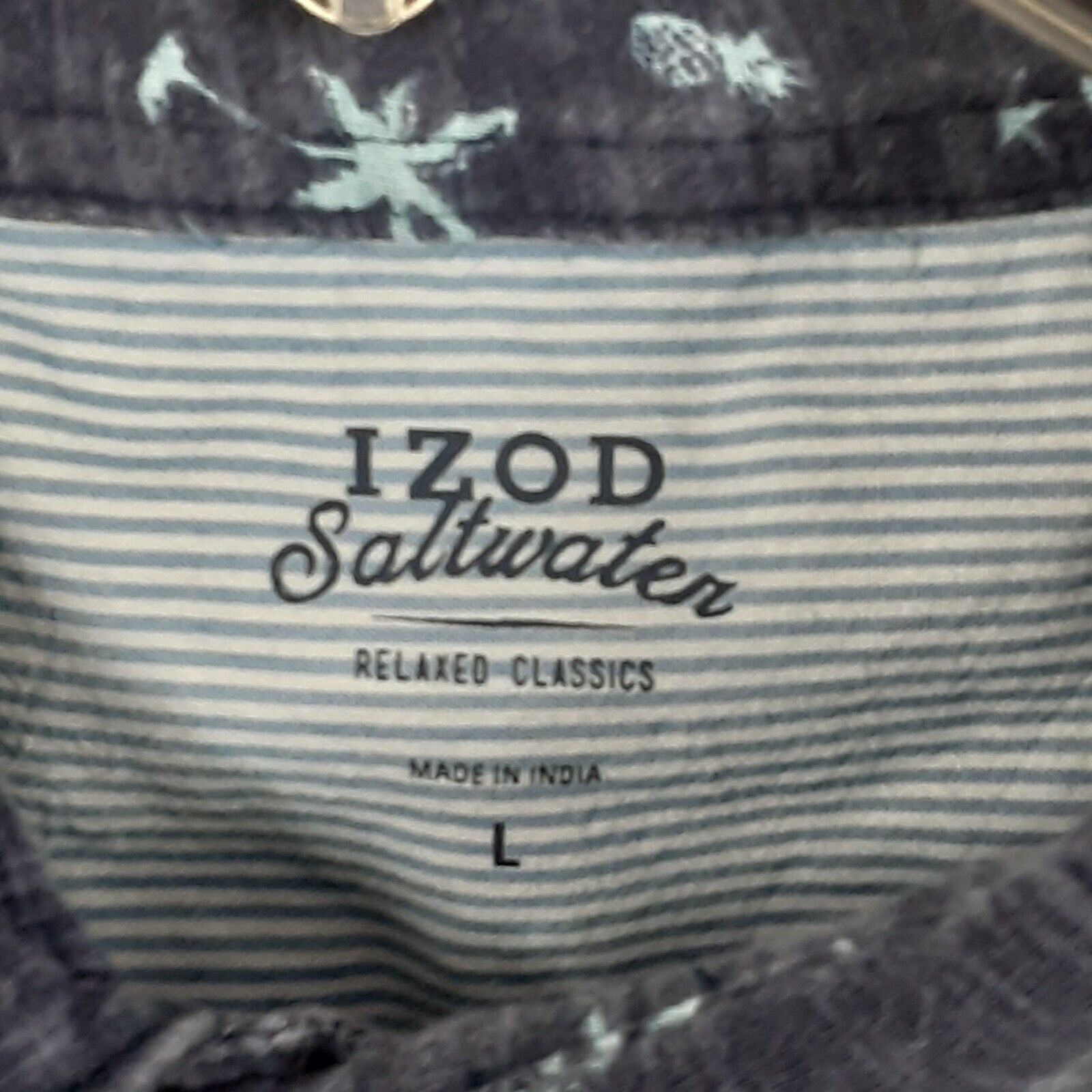 Izod Saltwater Relaxed Classics Mens L Blue Tropical Print Short Sleeve Polo