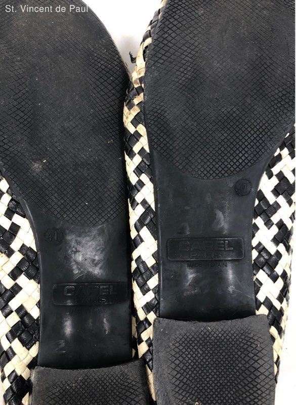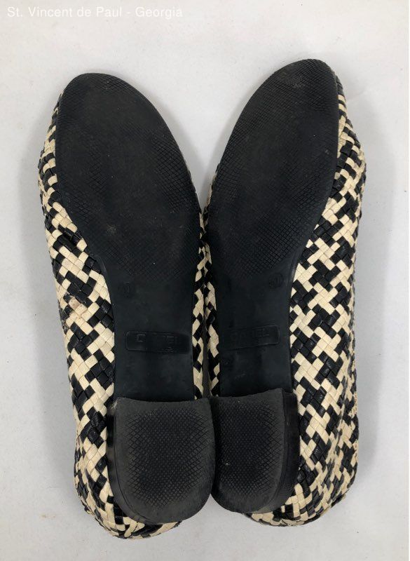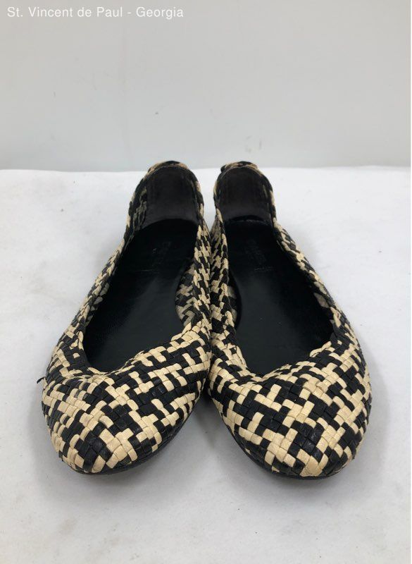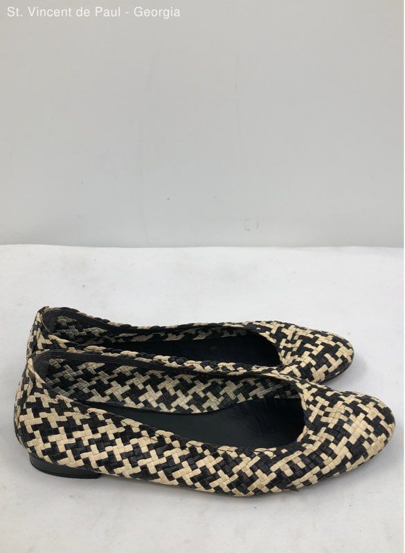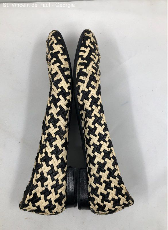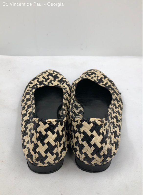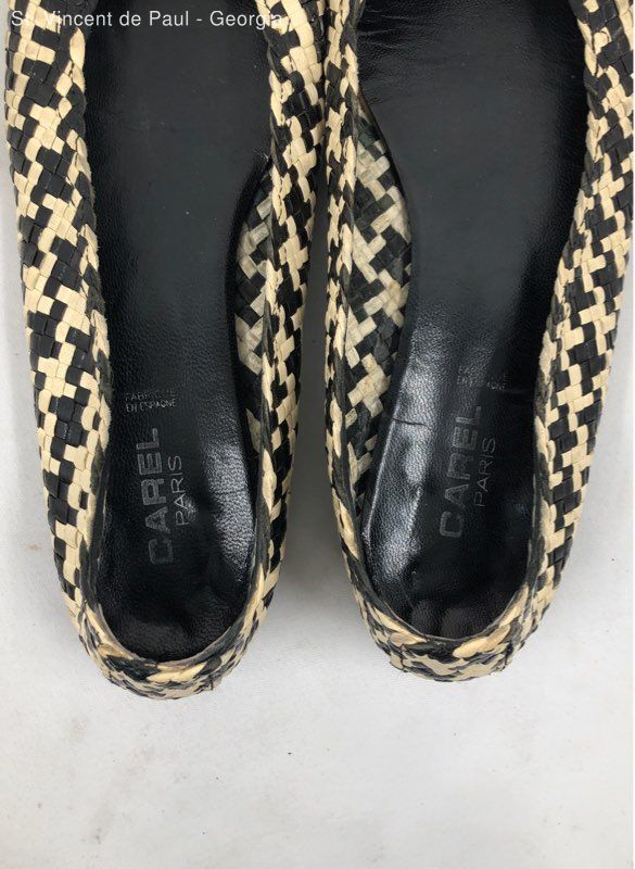Carel Black White Leather Basket Weeve Slip-On Flat Women 8