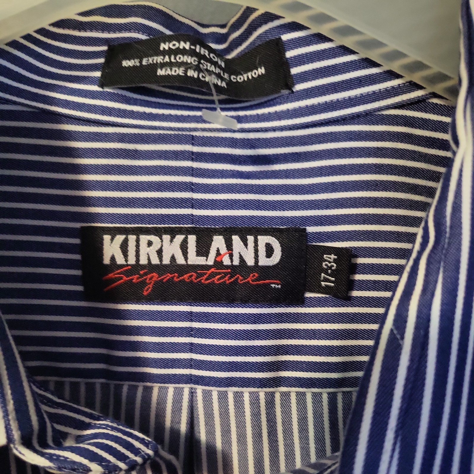 Kirkland Signature Men's Blue Striped Dress Shirt Size 17-34