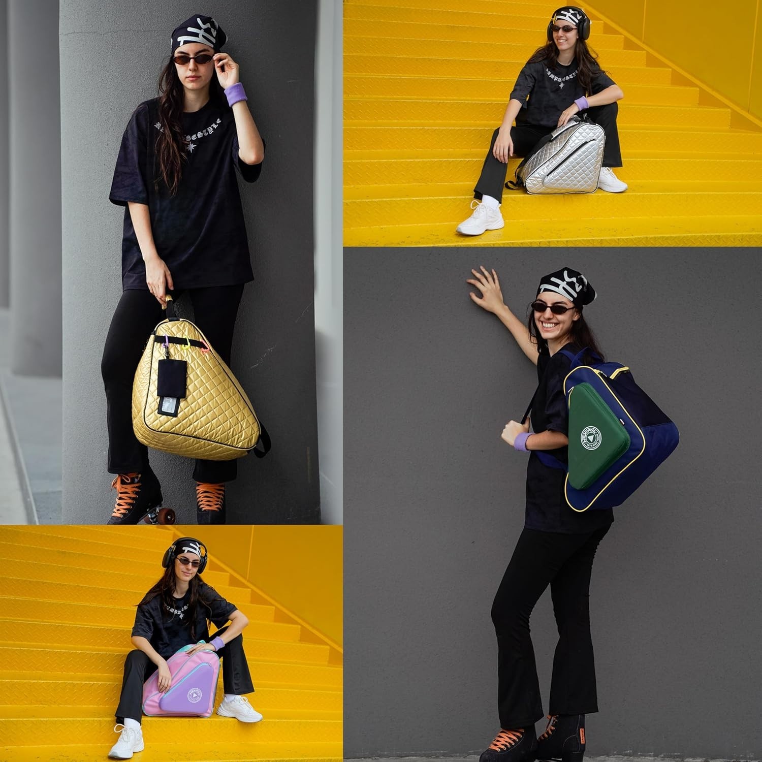 Skate Bag - Durable Nylon, Large Compartment - Ice Inline Roller Skates Gold