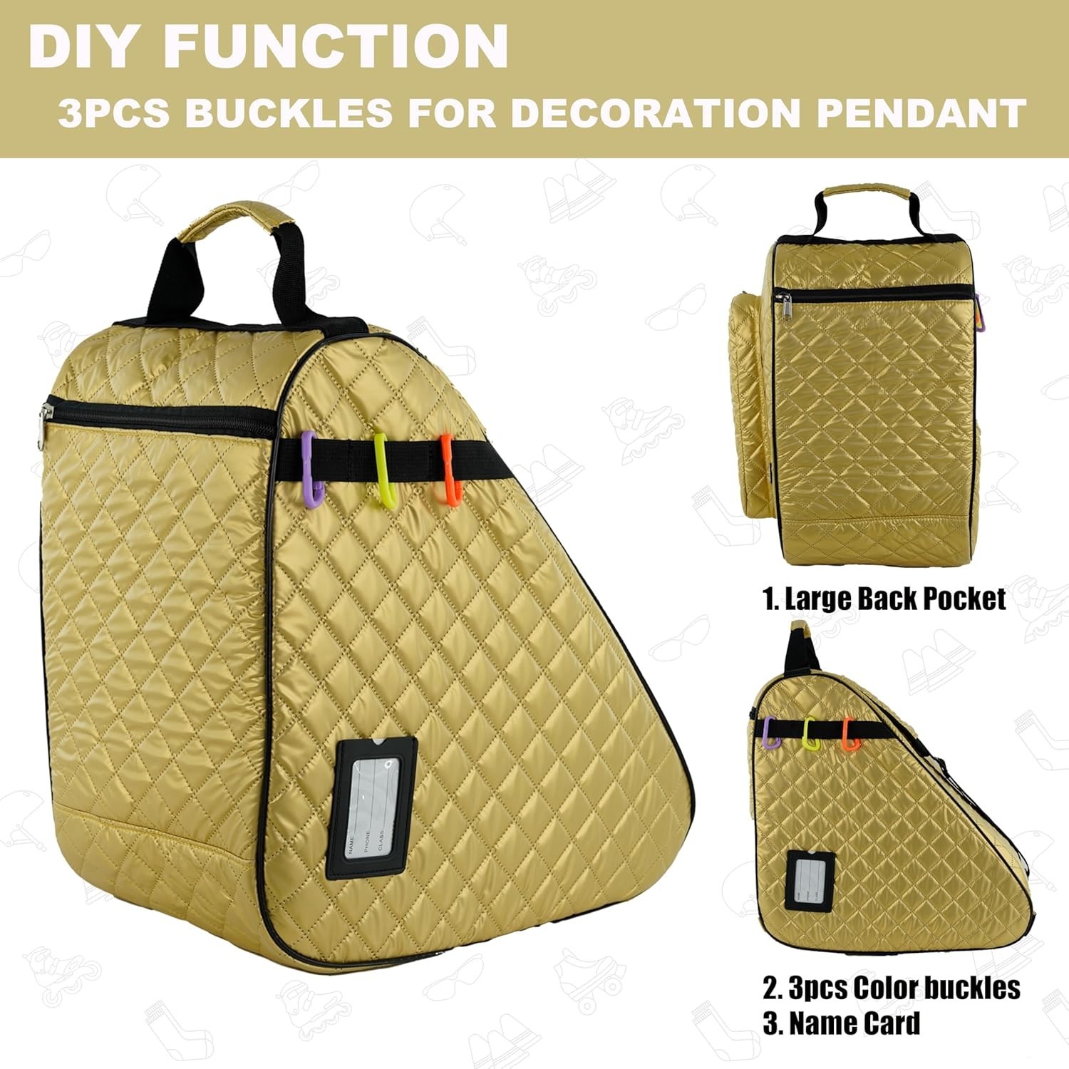как выглядит Skate Bag - Durable Nylon, Large Compartment - Ice Inline Roller Skates Gold фото