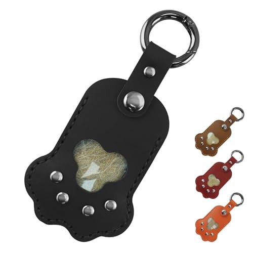 Pet Memorial Keychain, Leather Paw Shape Fur Photo Holder, Handmade Black