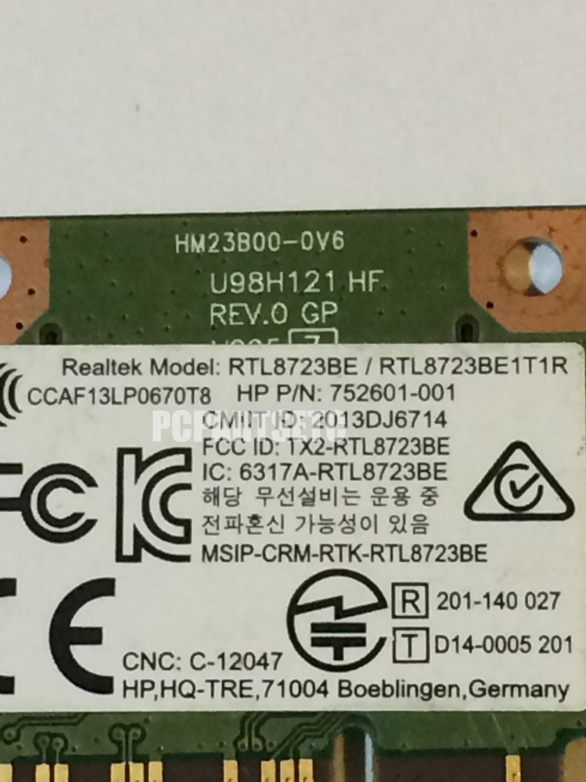 MPN: RTL8723BE, U98H121.01, U98H121 HF, RTL8723BE1T1R, 752601-001, 753077-001