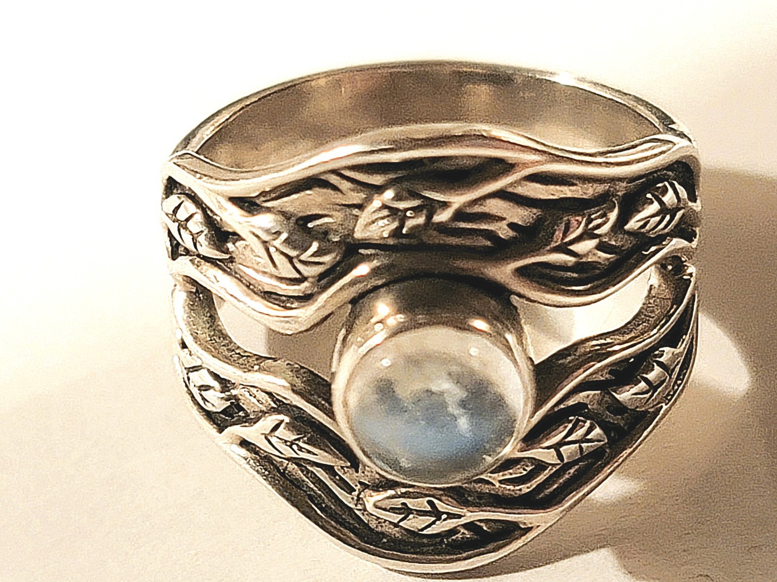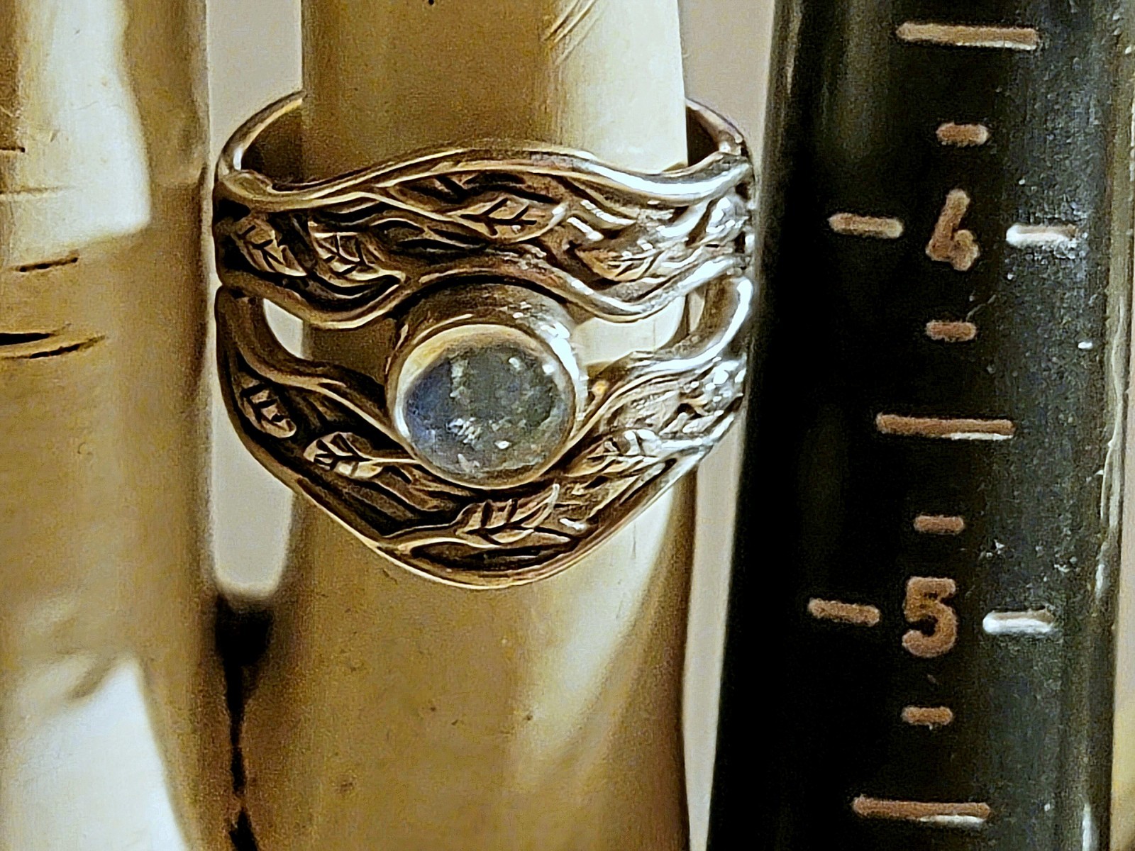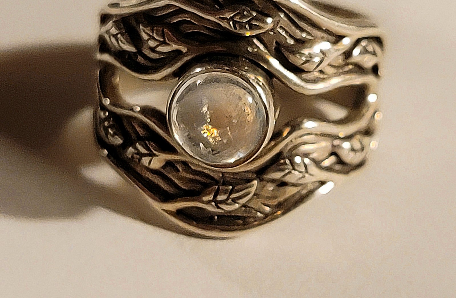 как выглядит Vintage Sterling Silver 925 Moonstone Ring With Leaf Engraving Size 6/7 фото