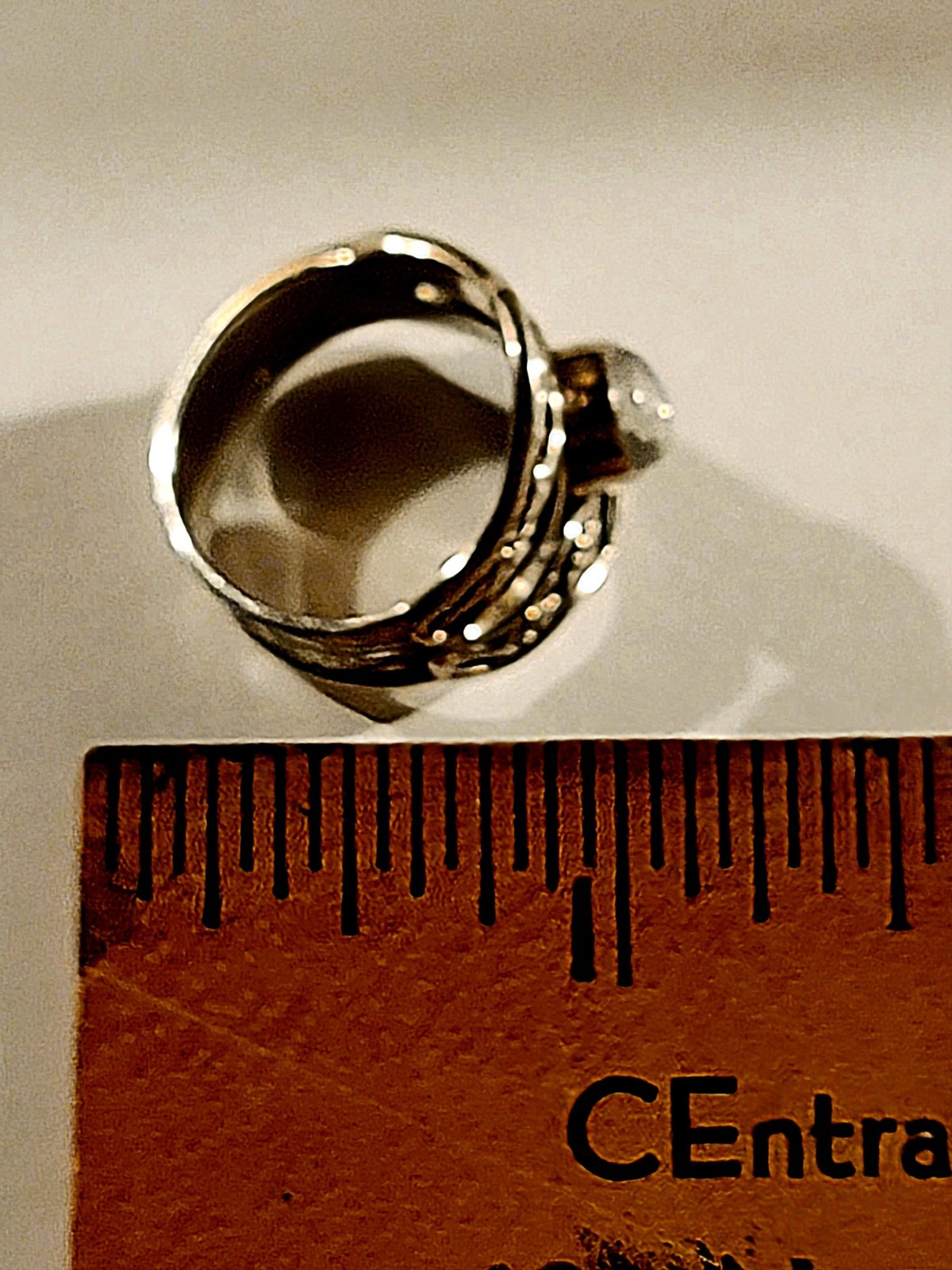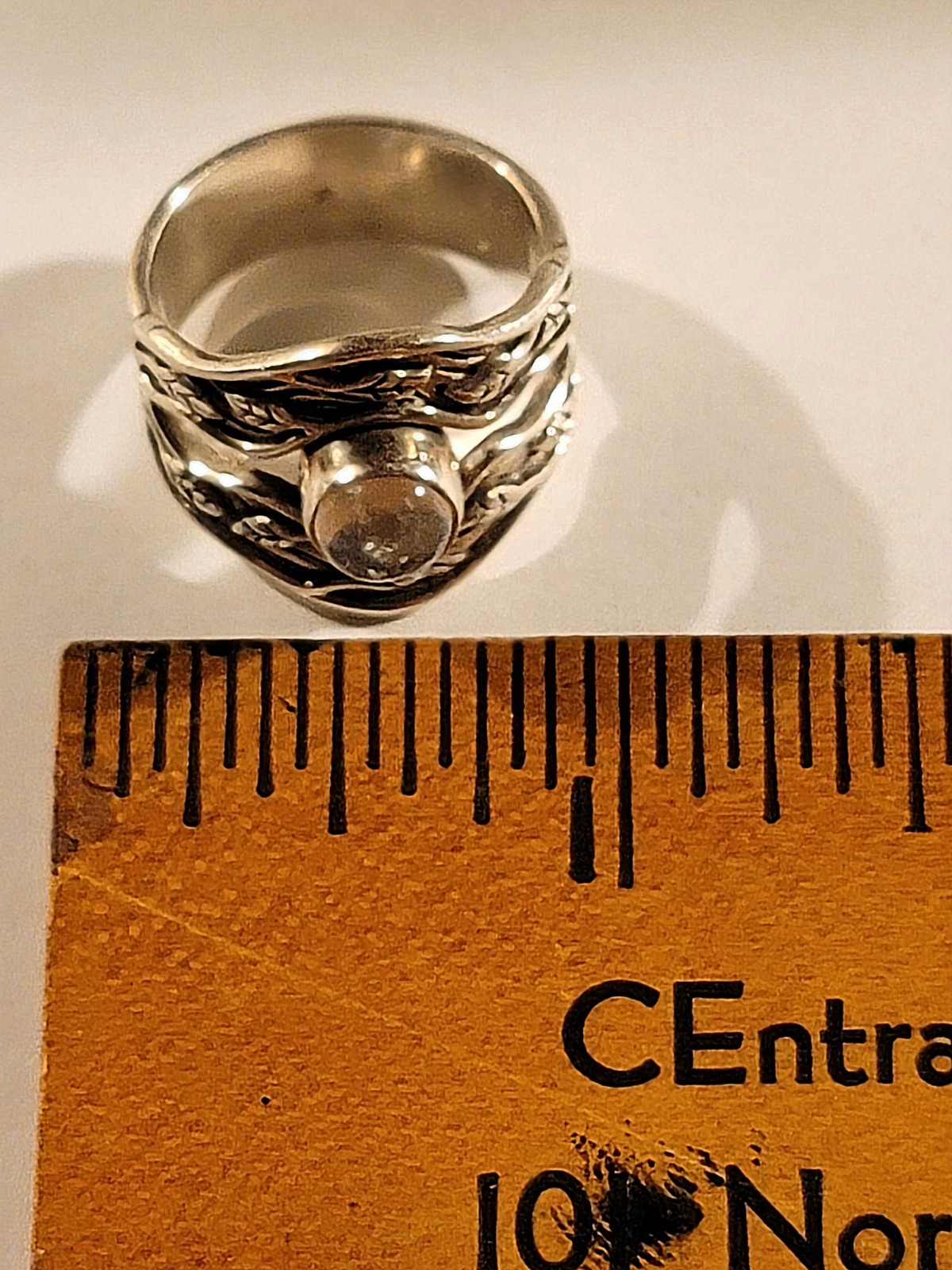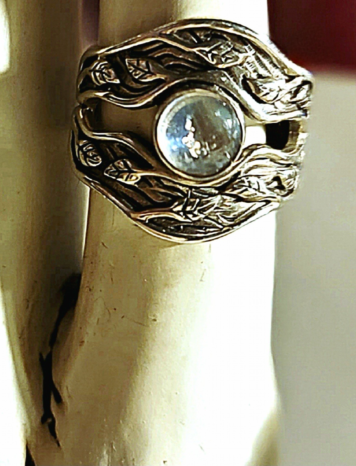 как выглядит Vintage Sterling Silver 925 Moonstone Ring With Leaf Engraving Size 6/7 фото