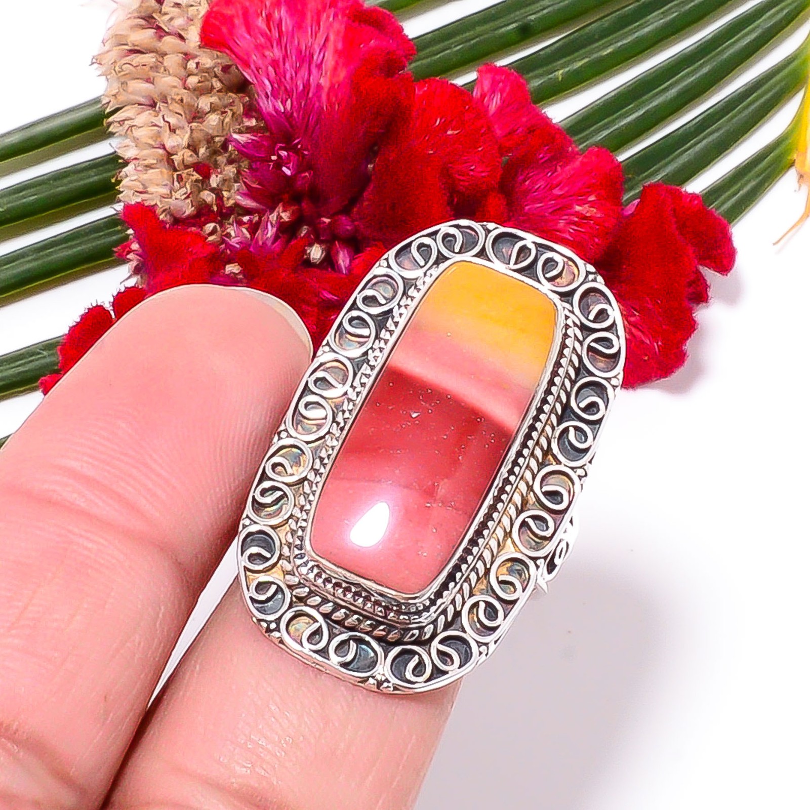 как выглядит Mookaite Fine Art Oxidised 925 Sterling Silver Ring s.9 Sk23, Christmas Gift фото