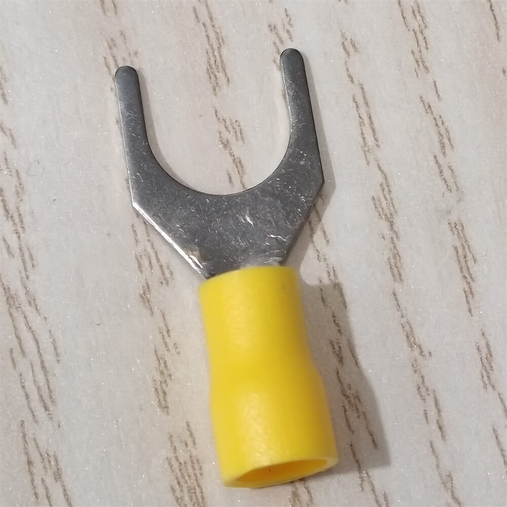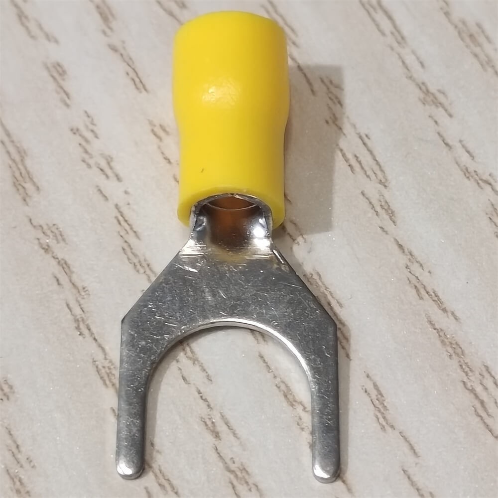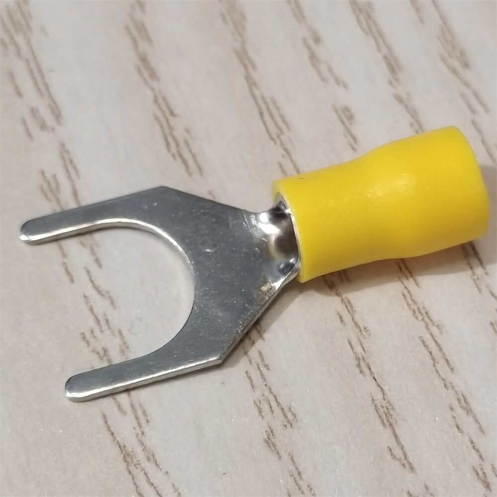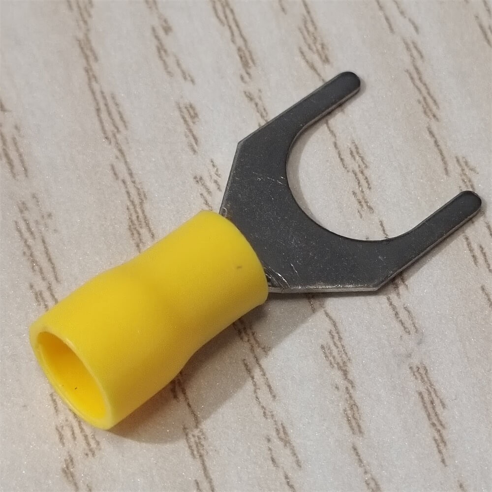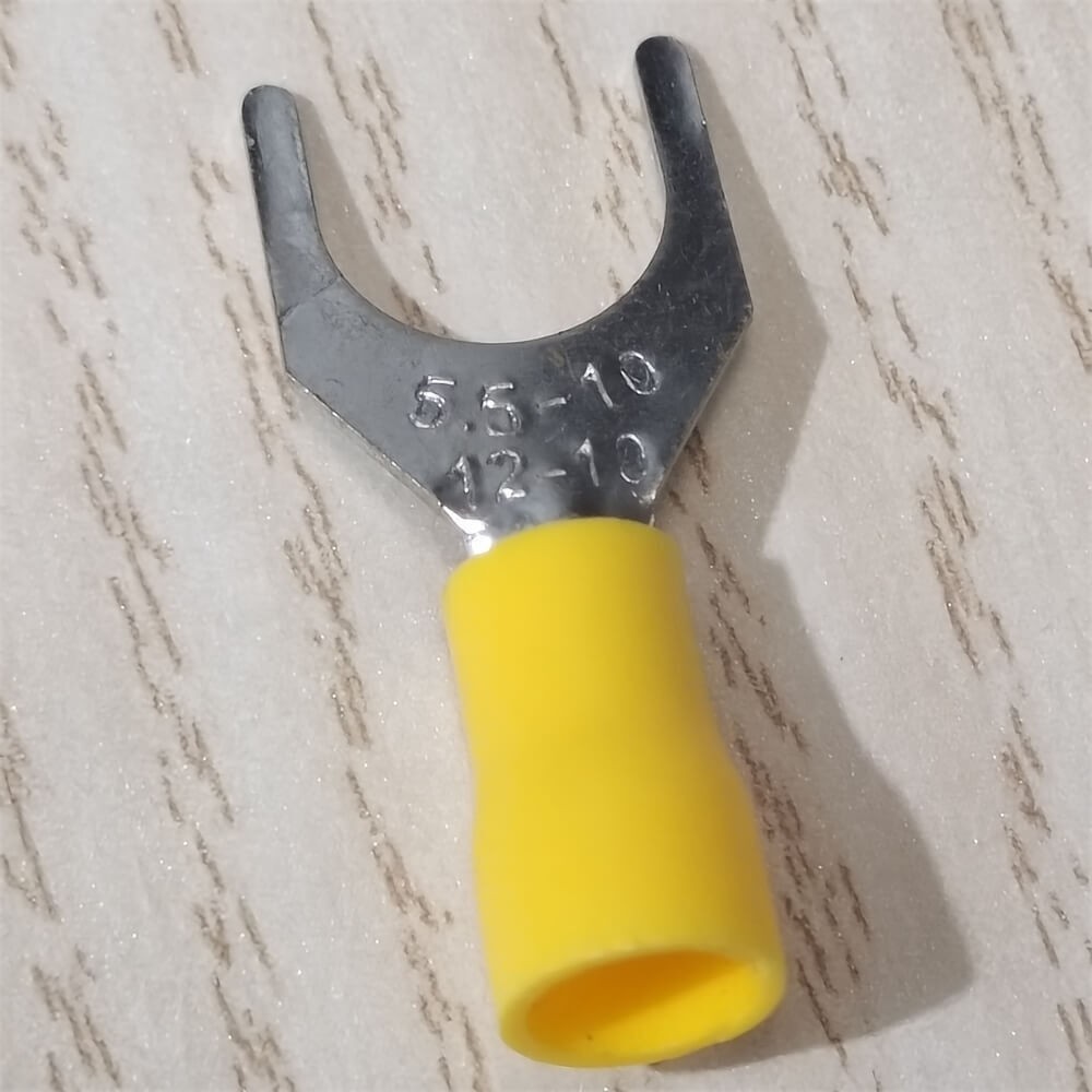 как выглядит 50PCS VINYL SPADE FORK CRIMP 12-10AWG GAUGE WIRE CONNECTORS TERMINALS 3/8" STUD фото