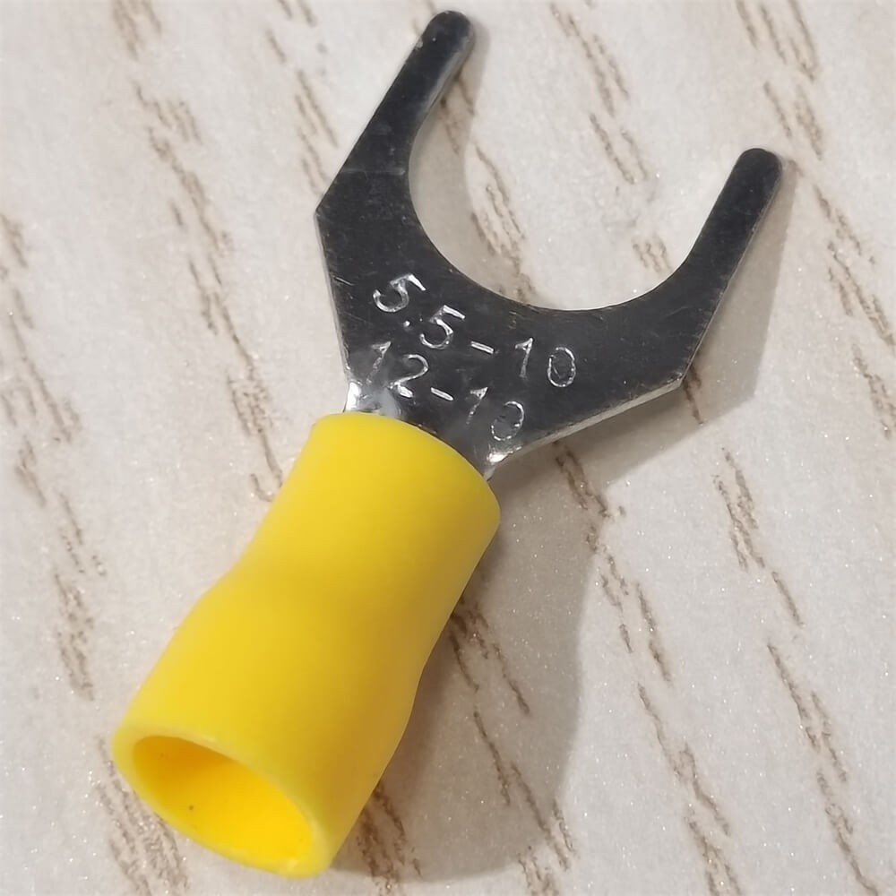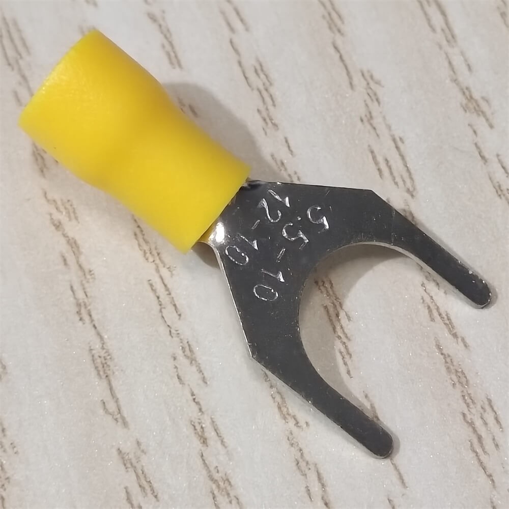 50PCS VINYL SPADE FORK CRIMP 12-10AWG GAUGE WIRE CONNECTORS TERMINALS 3/8 STUD