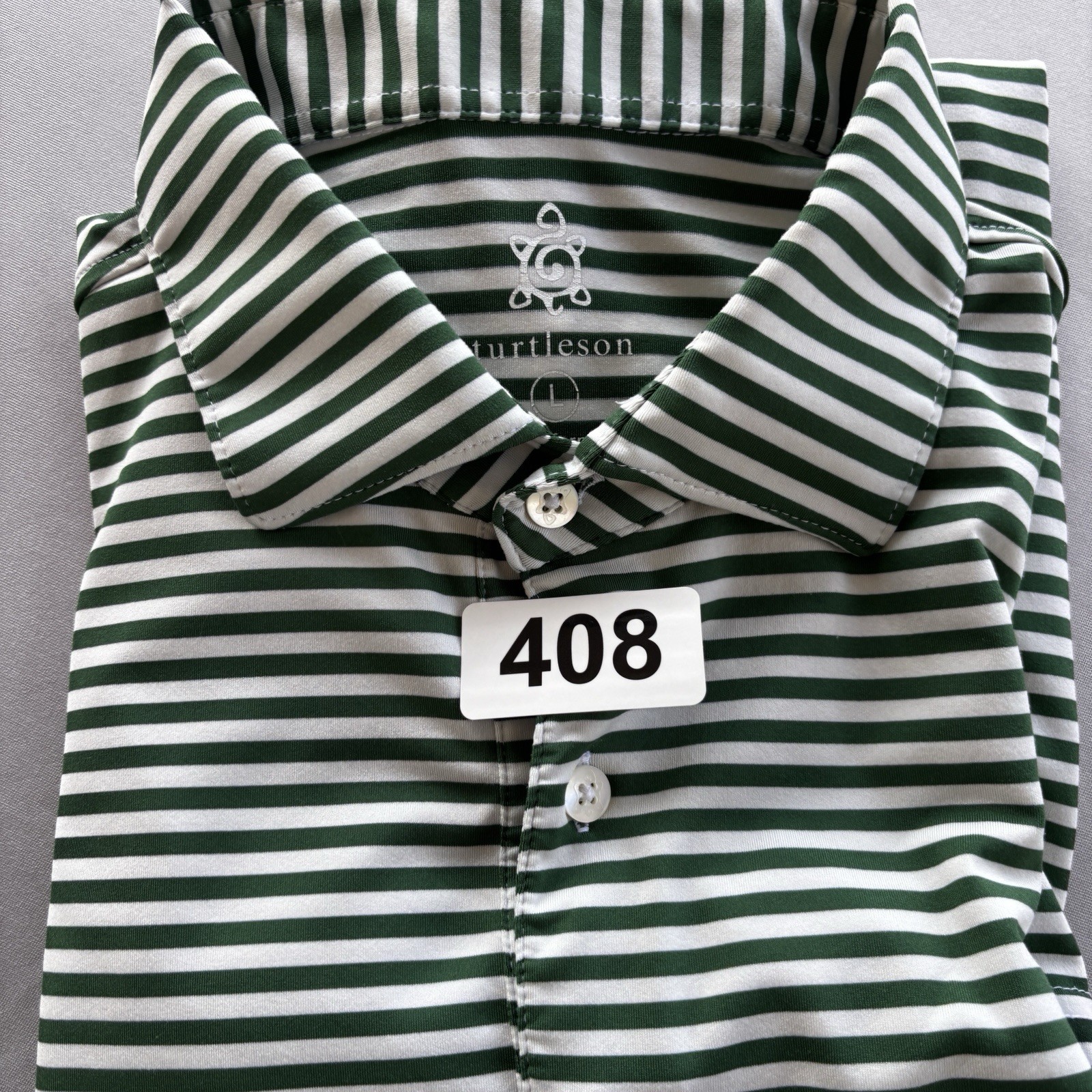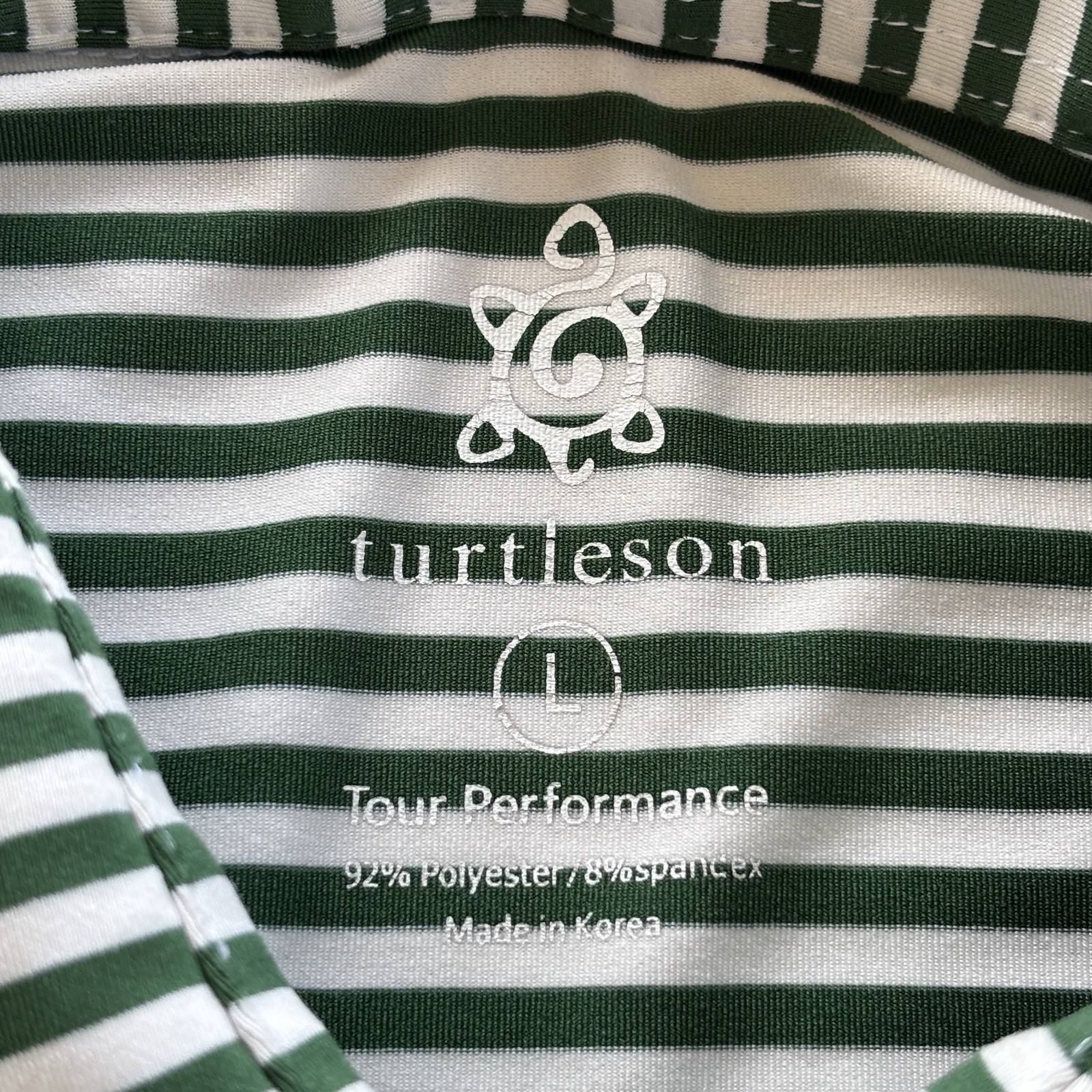 Turtleson Men's Golf Polo Shirt Large Green White Stripe Tour Performance