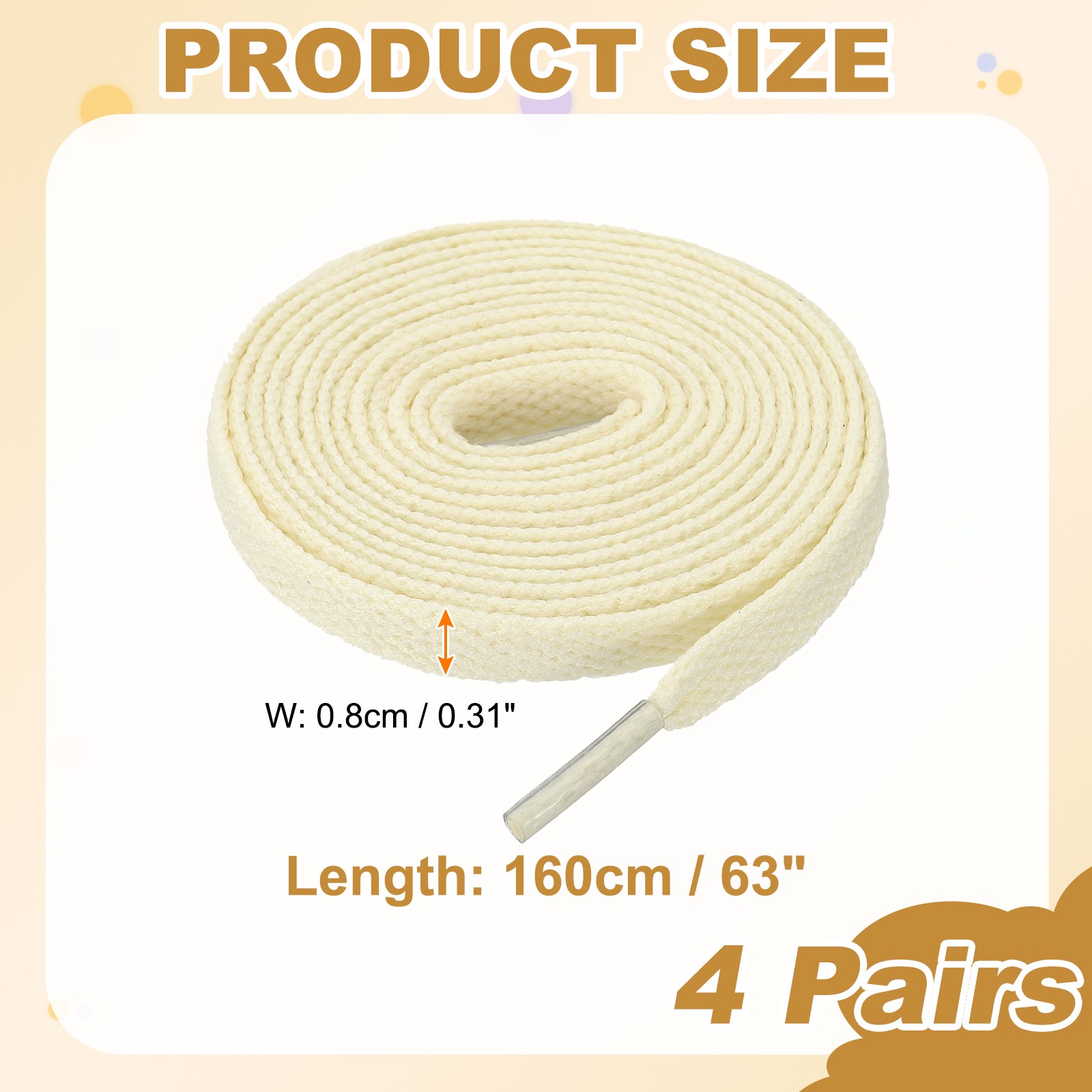 4 Pairs Flat Shoe Laces 5/16 x 160 Polyester Sneaker Shoestring, Beige