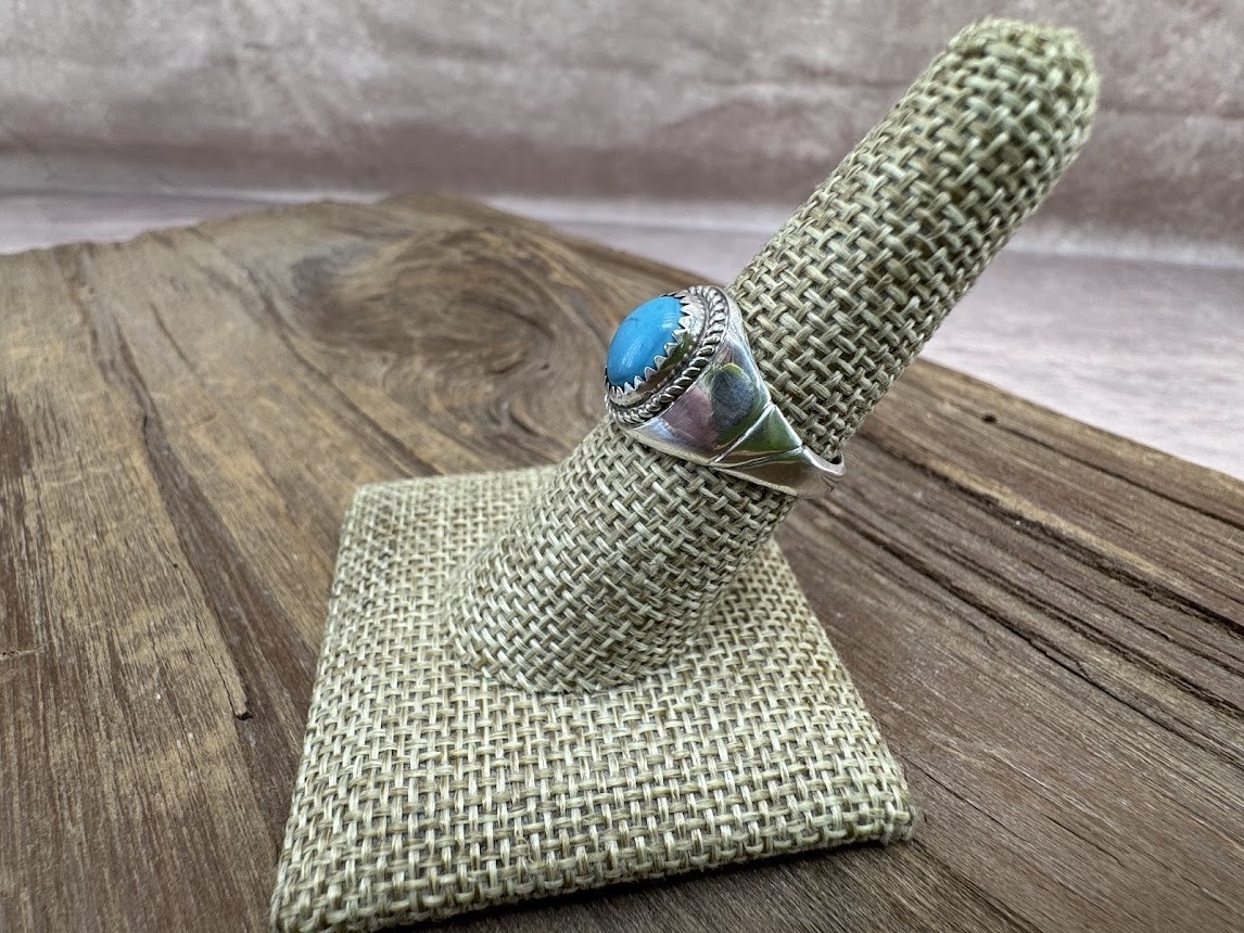 Sterling Silver Turquoise Cabochon Ring Size 7 Unmarked 4.05 dwt Southwest