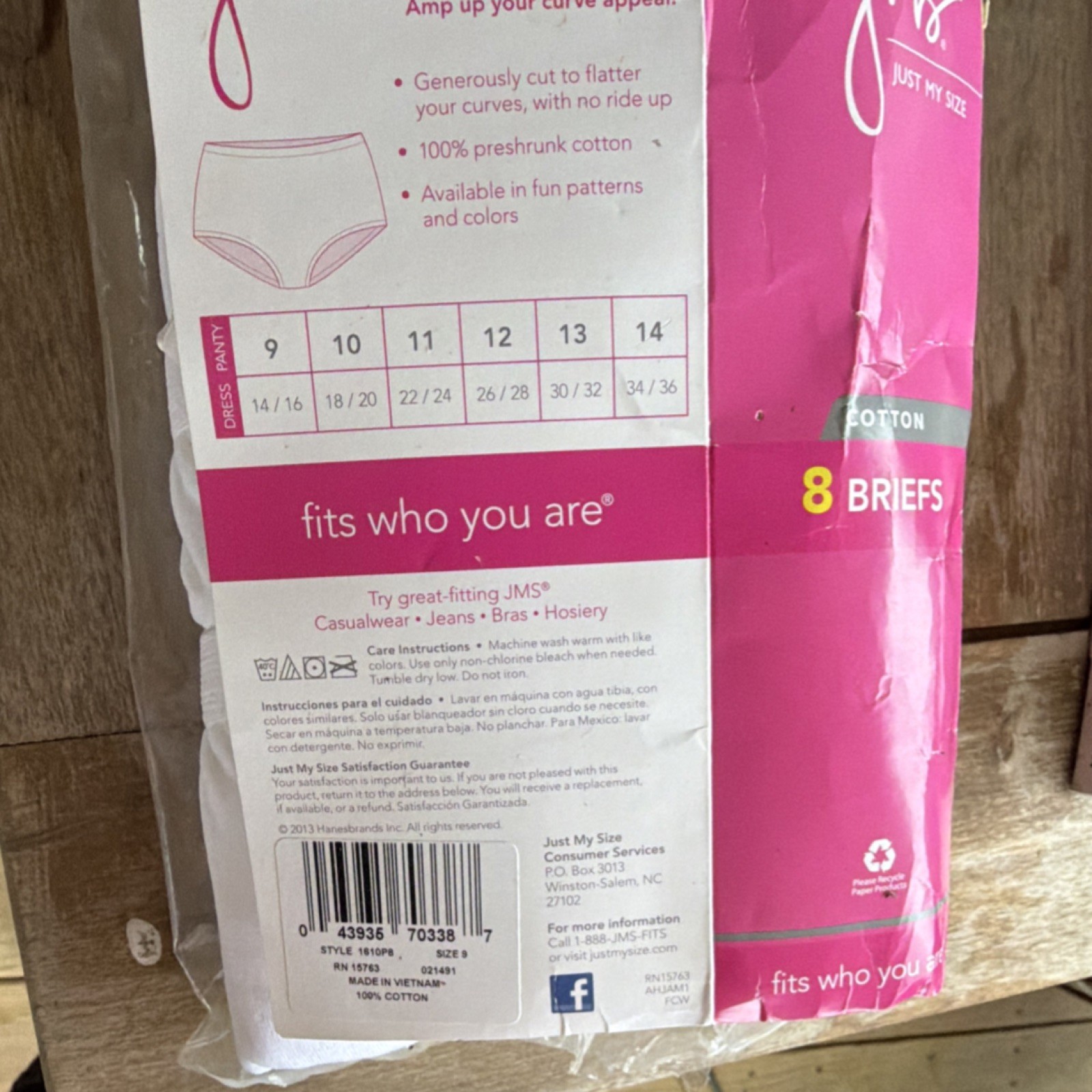 JMS Just My Size Cotton Brief Panties 5 Pack White Plus Size 14/16 No Ride Up