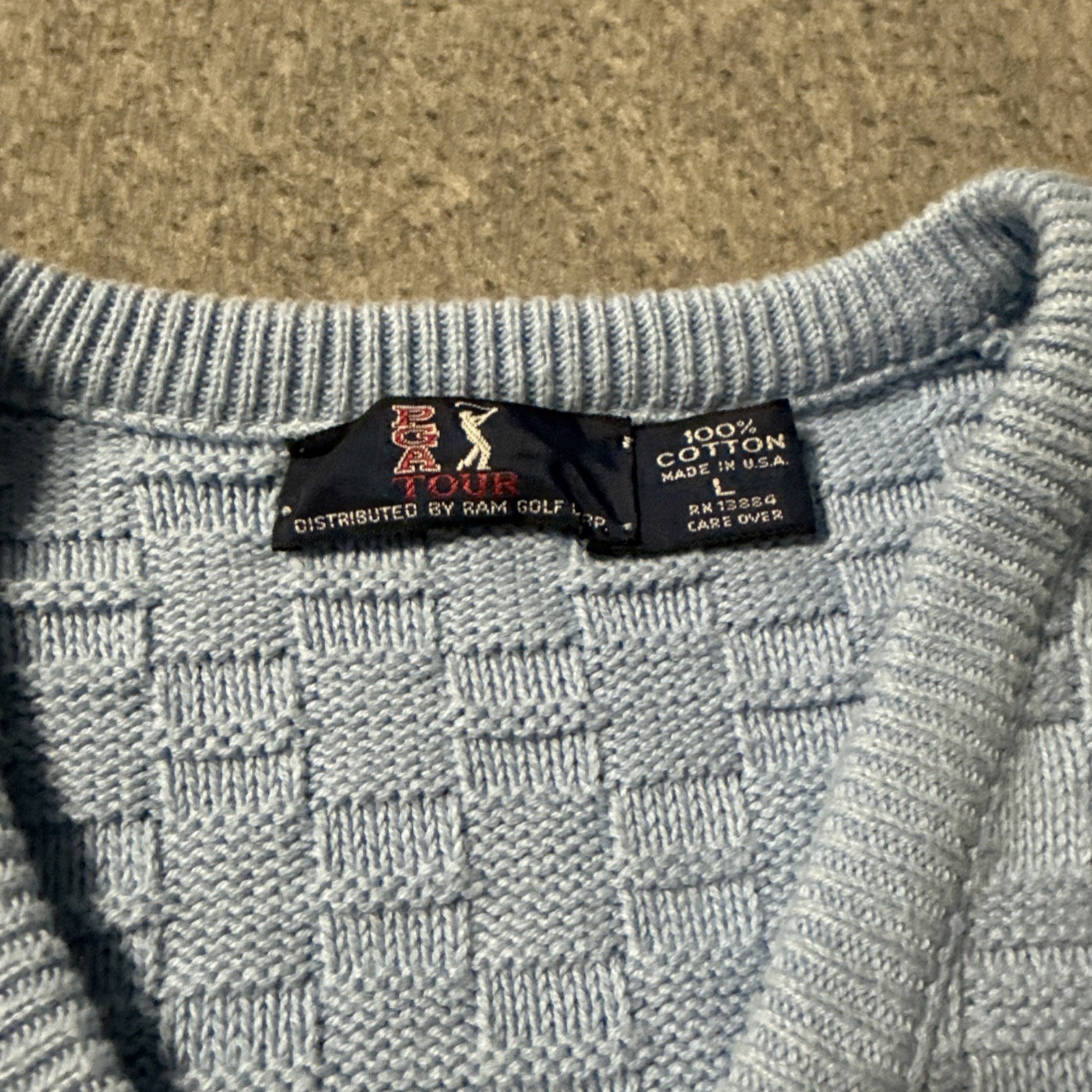 Vintage PGA Tour Mens Large Vest Made in USA Blue Textured Knit Sweater Golf EUC