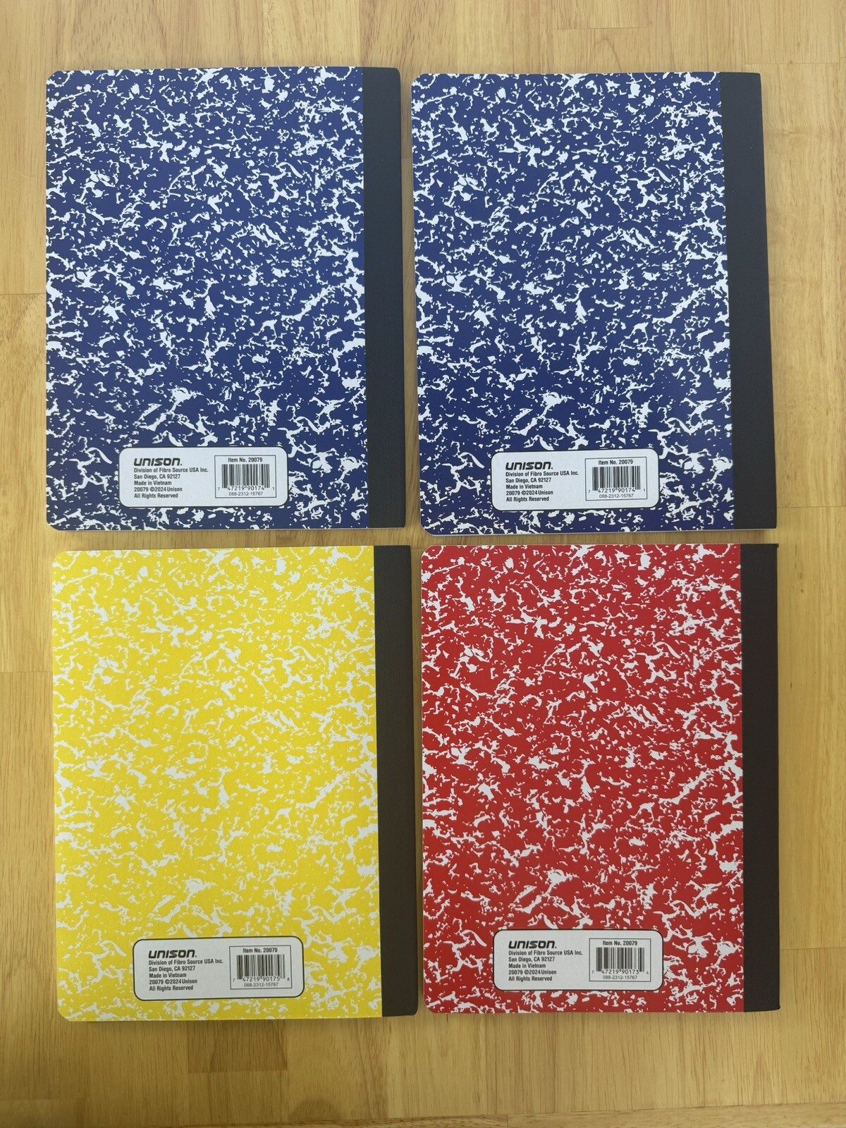 Notebooks Composition Book For School-80 College Ruled Sheets Unison NEW Qty 4
