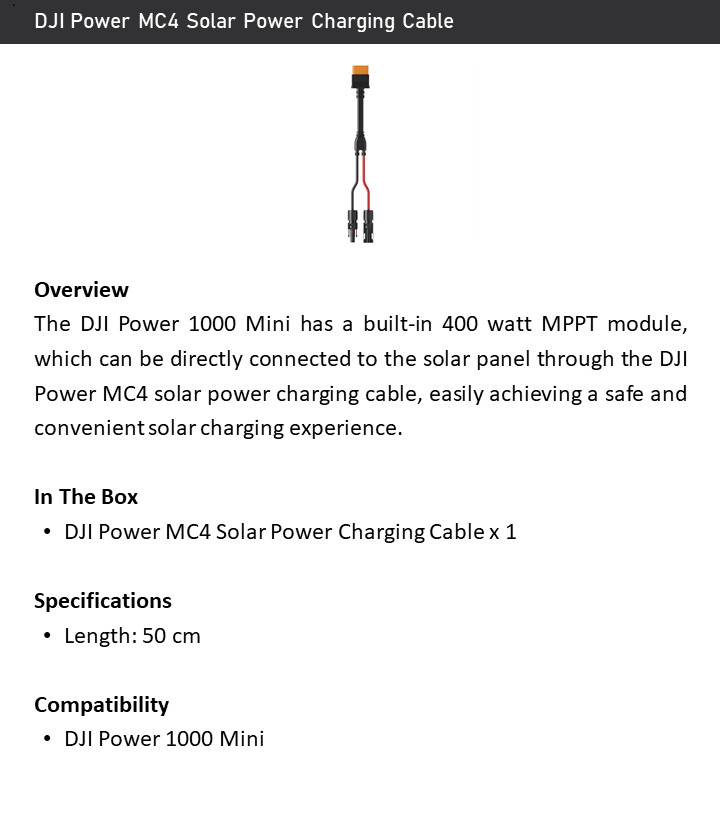 DJI Power MC4 Solar Cable Charge DJI Power 1000 Mini from Solar Panels