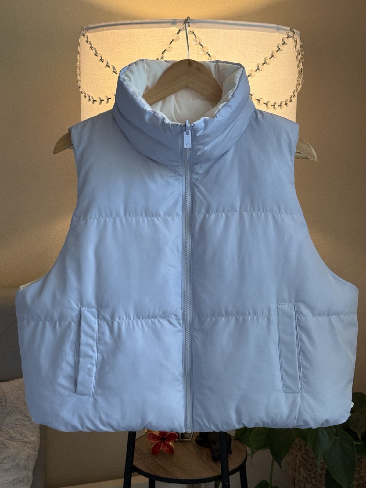 All In Motion Reversible Puffer Vest Light Blue Ivory Women Size L