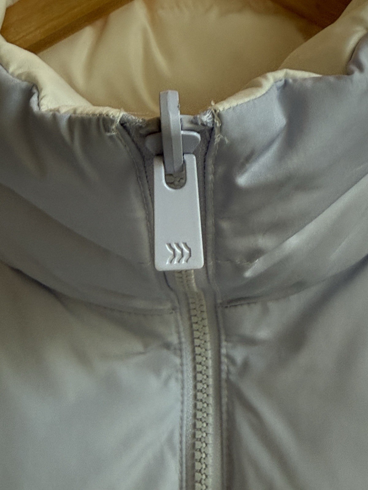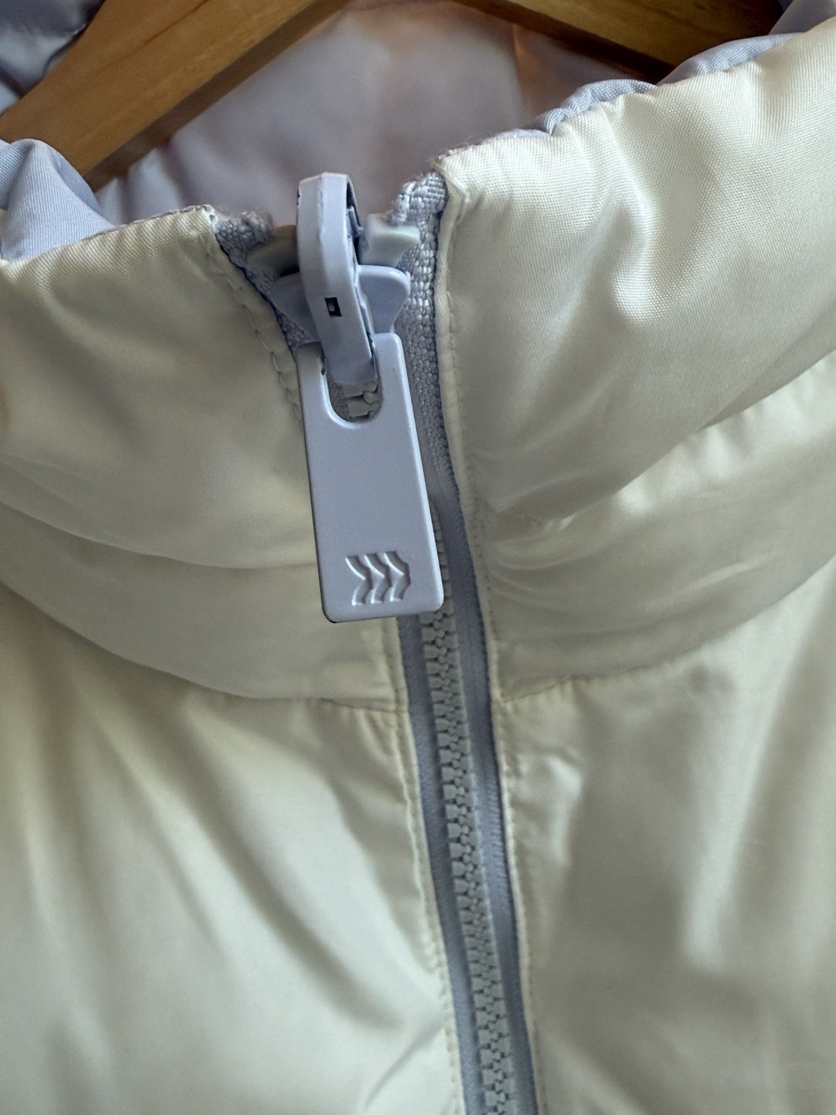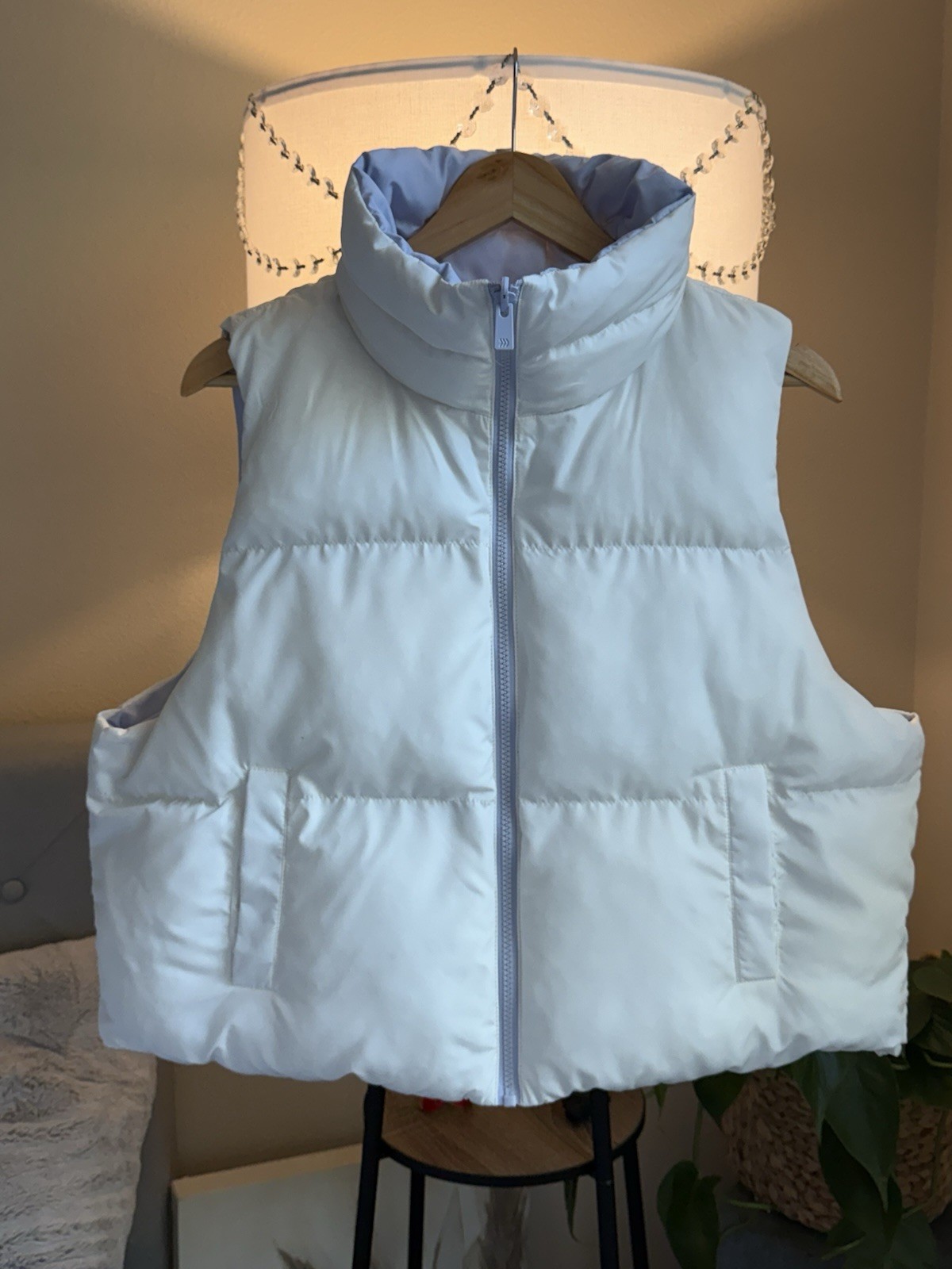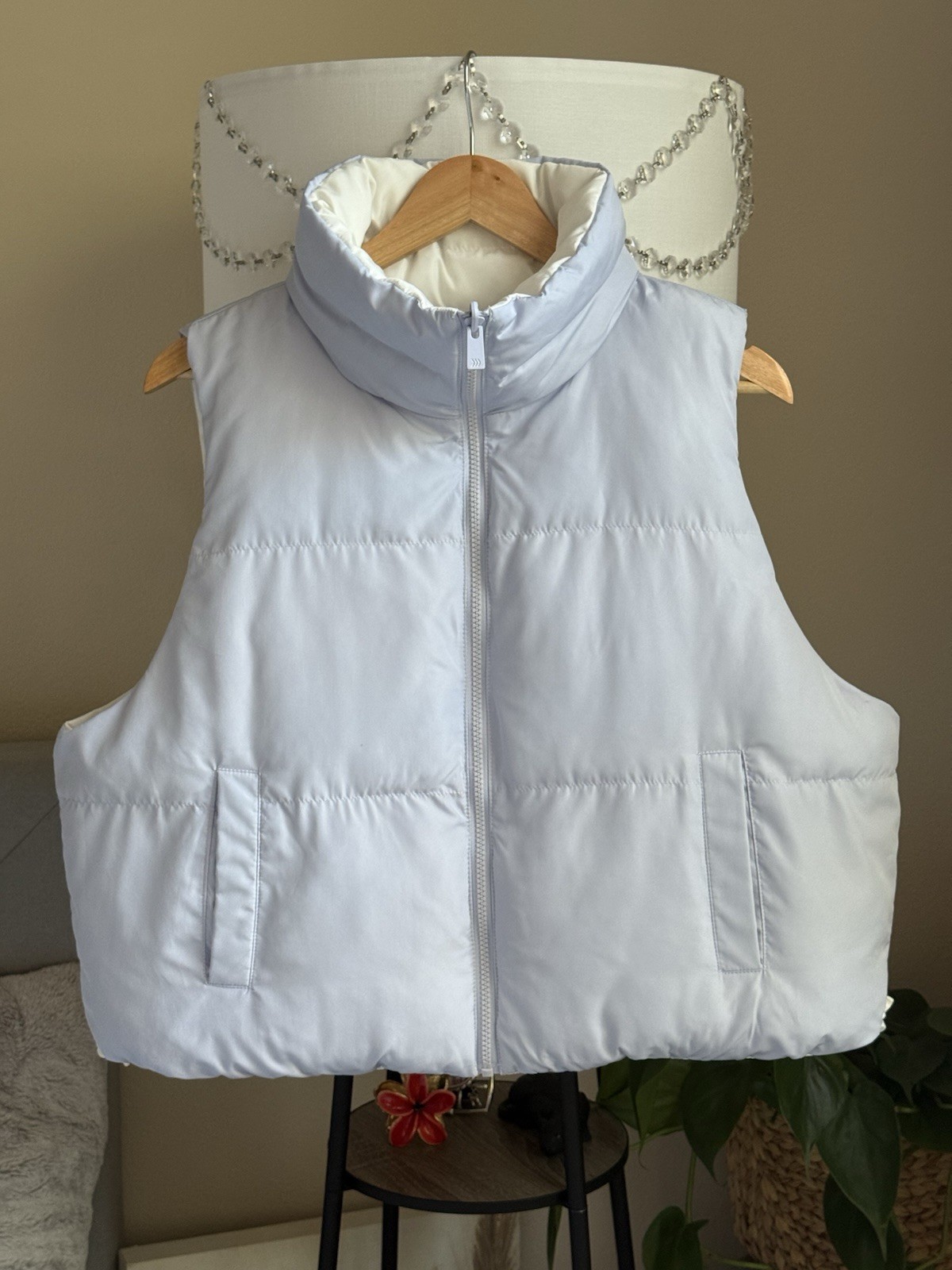 как выглядит All In Motion Reversible Puffer Vest Light Blue Ivory Women Size L фото