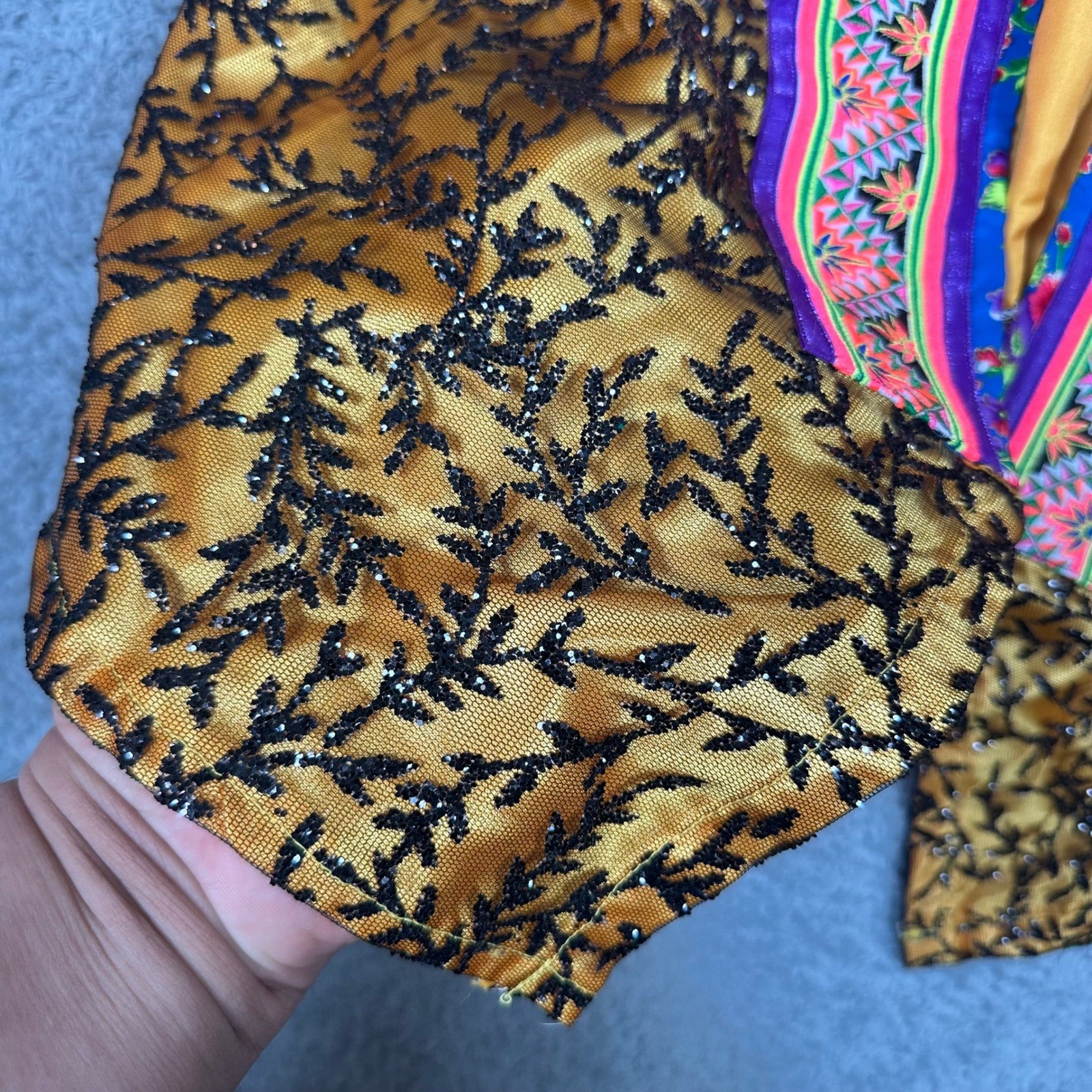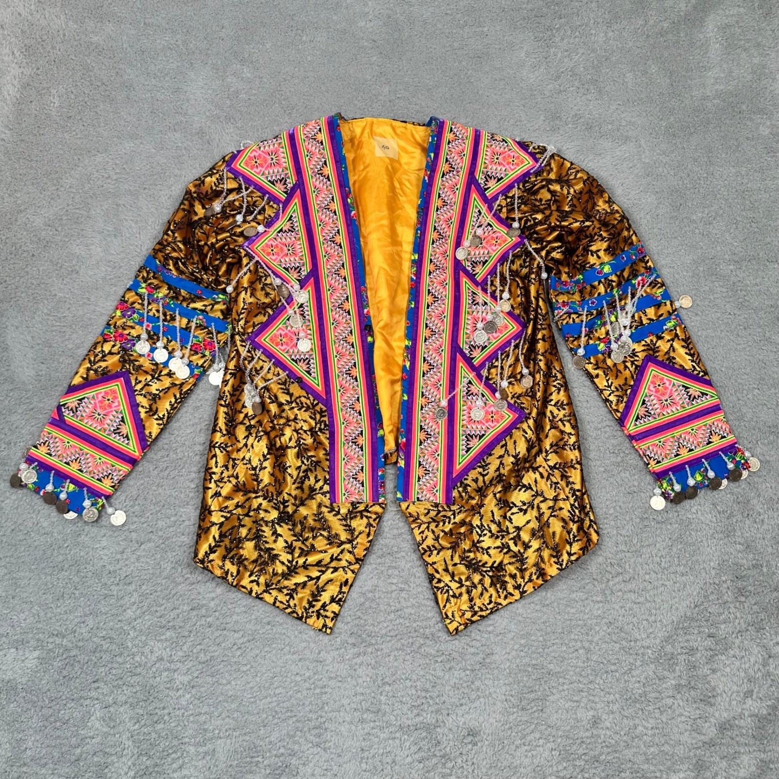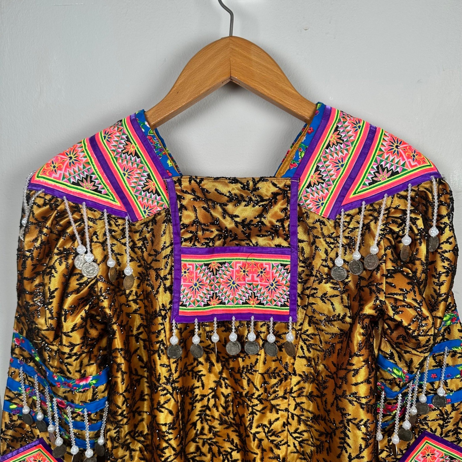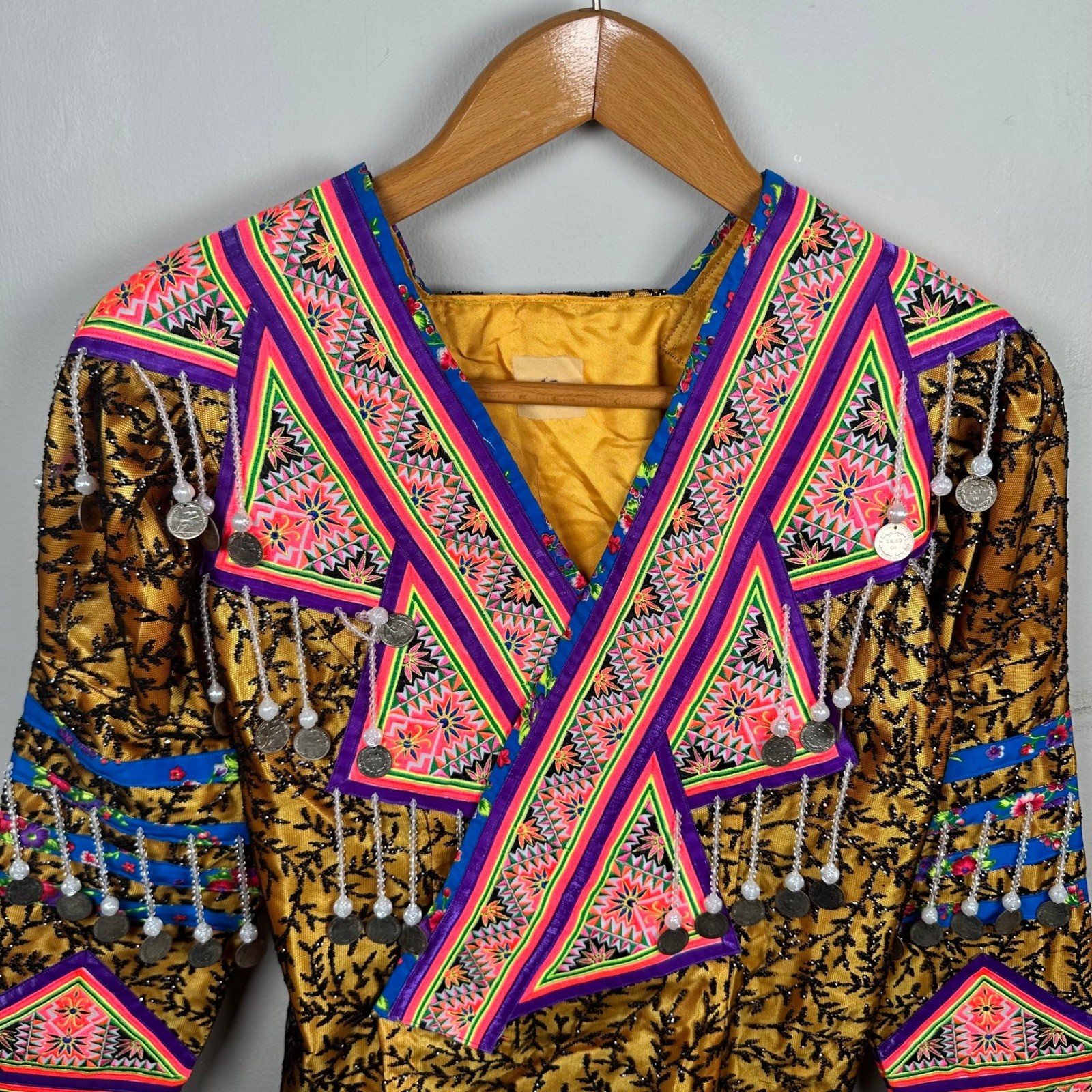 как выглядит Traditional Hmong Jacket Gold Embroidered Coin Fringe Beadwork Statement Coat фото