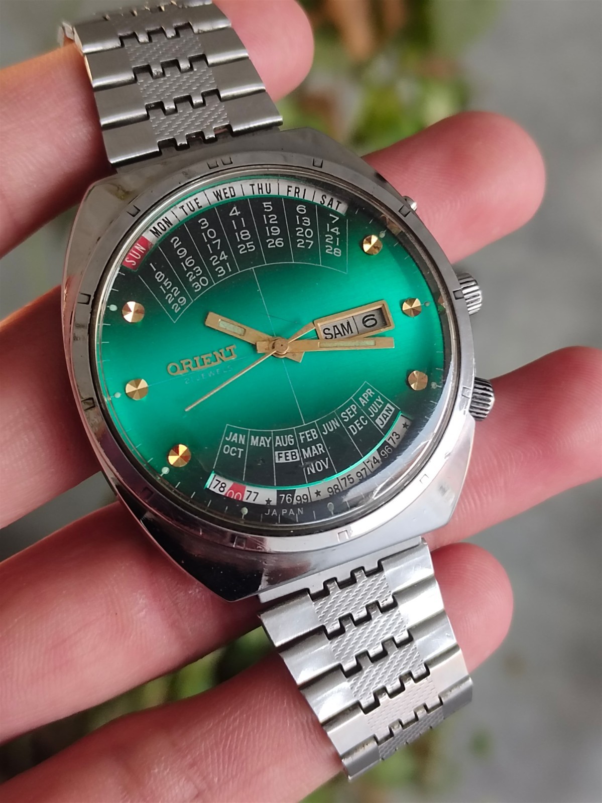 Vintage Orient Perpetual Calendar Green Dial Automatic Y469672-4A Japan Rare