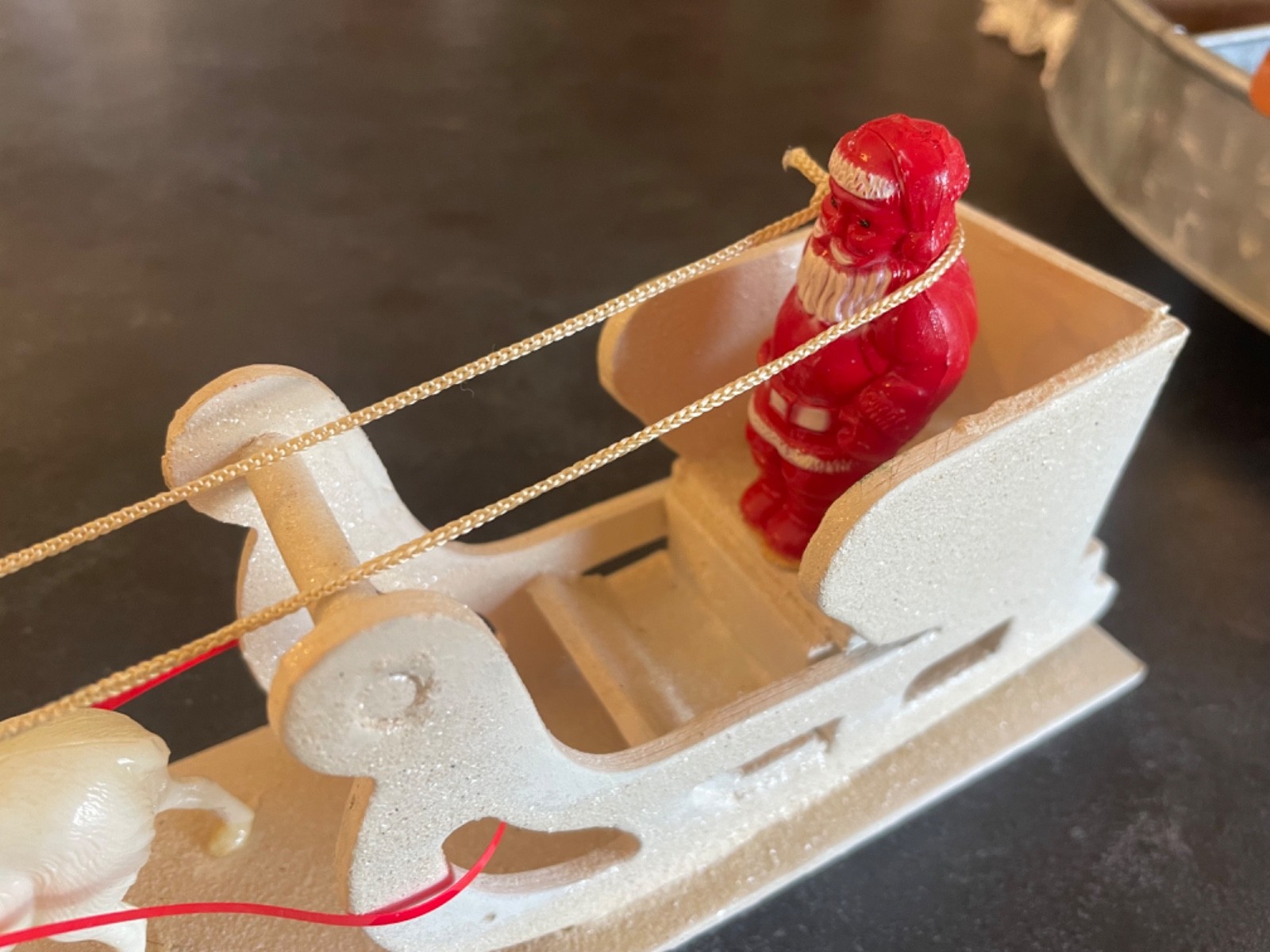 • Vintage 12 Mounted Santa Claus Sleigh Pulled by 2 Celluloid Reindeer