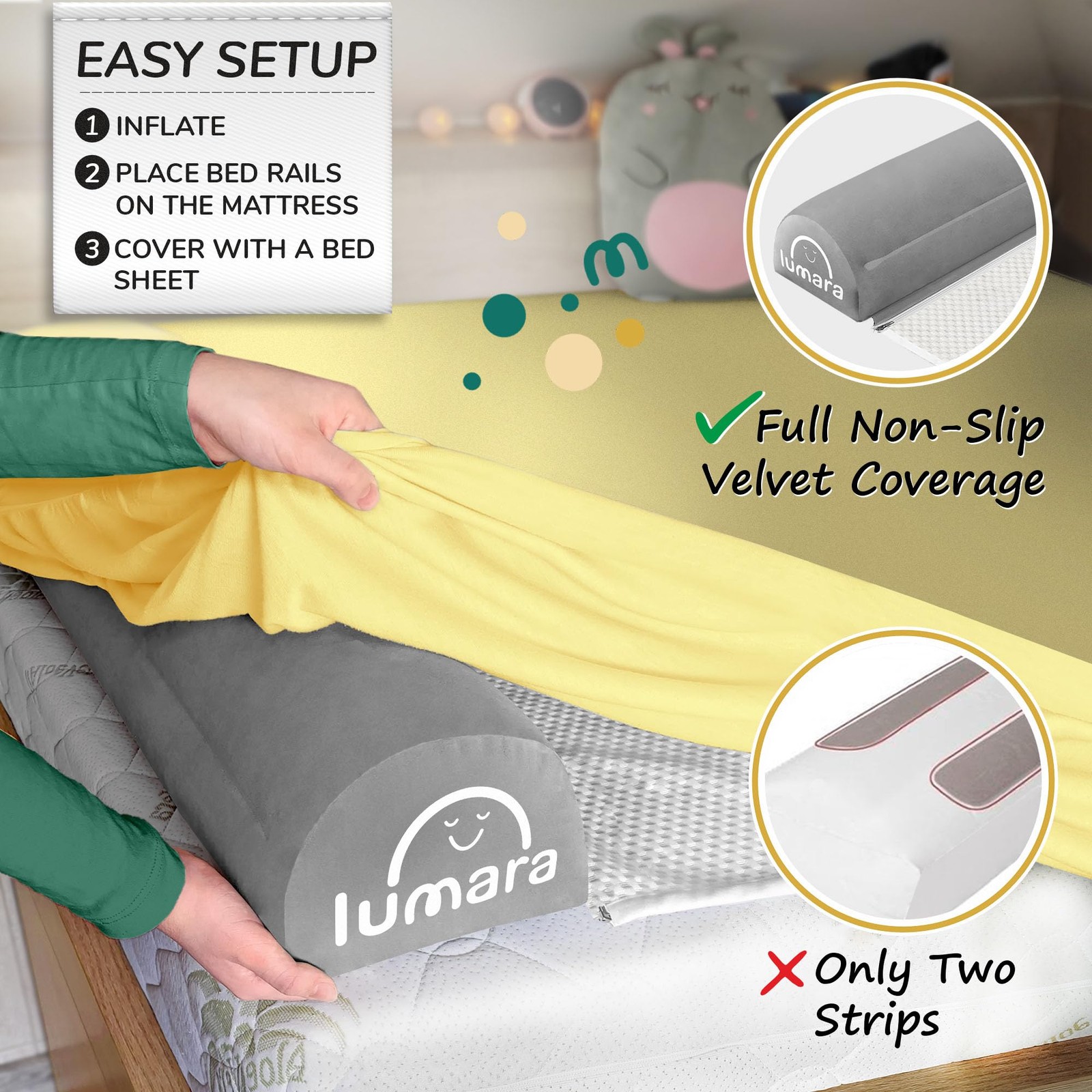 Inflatable Bed Rail for Toddlers 2 Pack - Portable Travel Bed Bumpers for Fit...