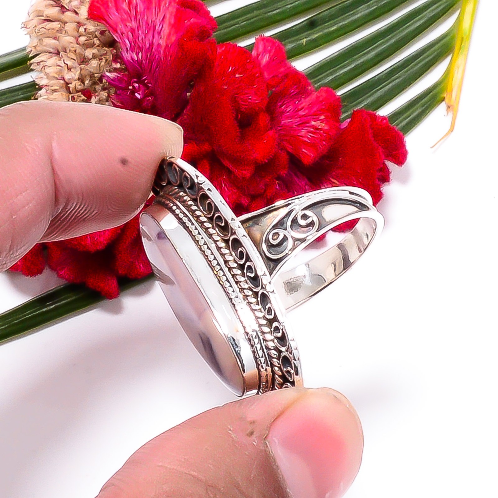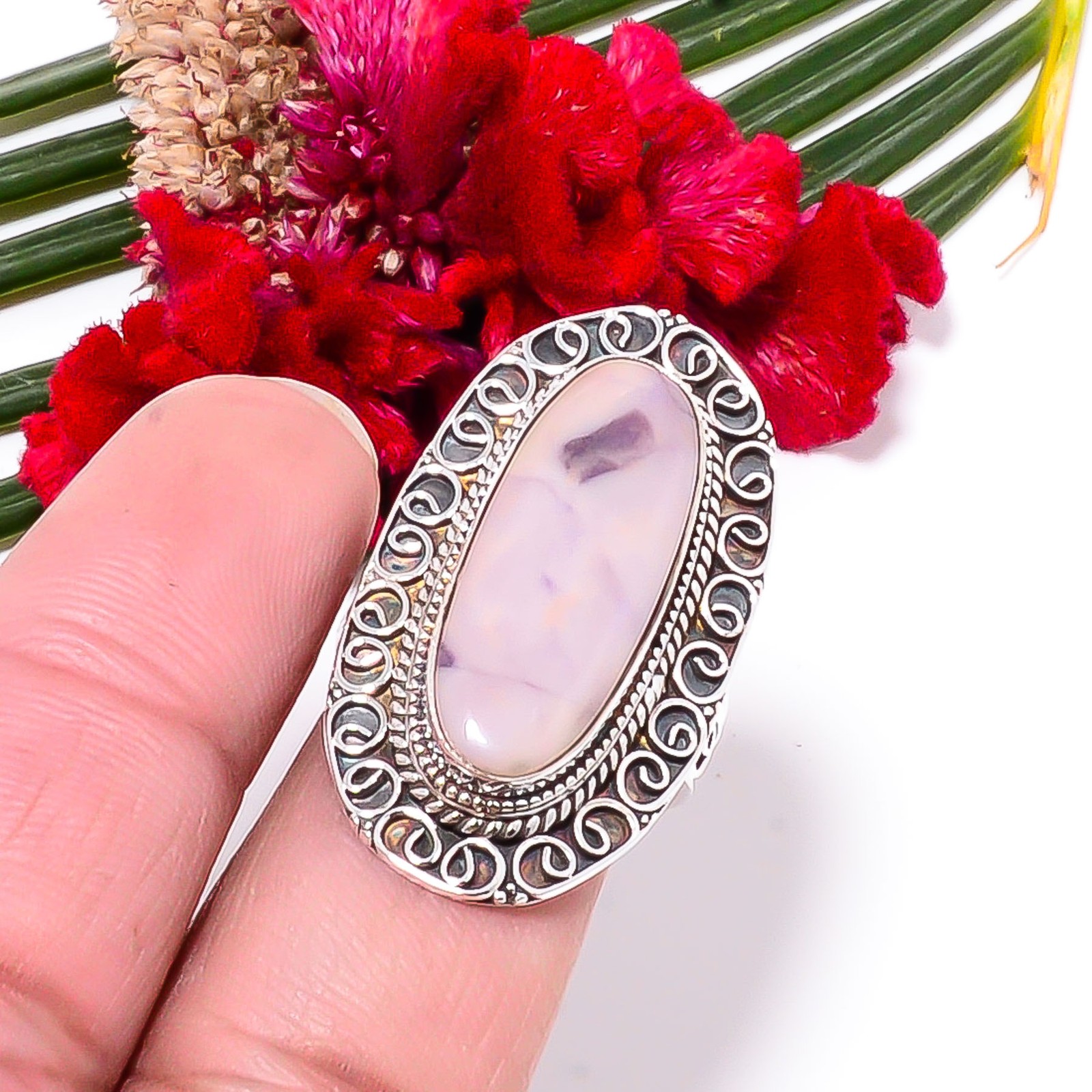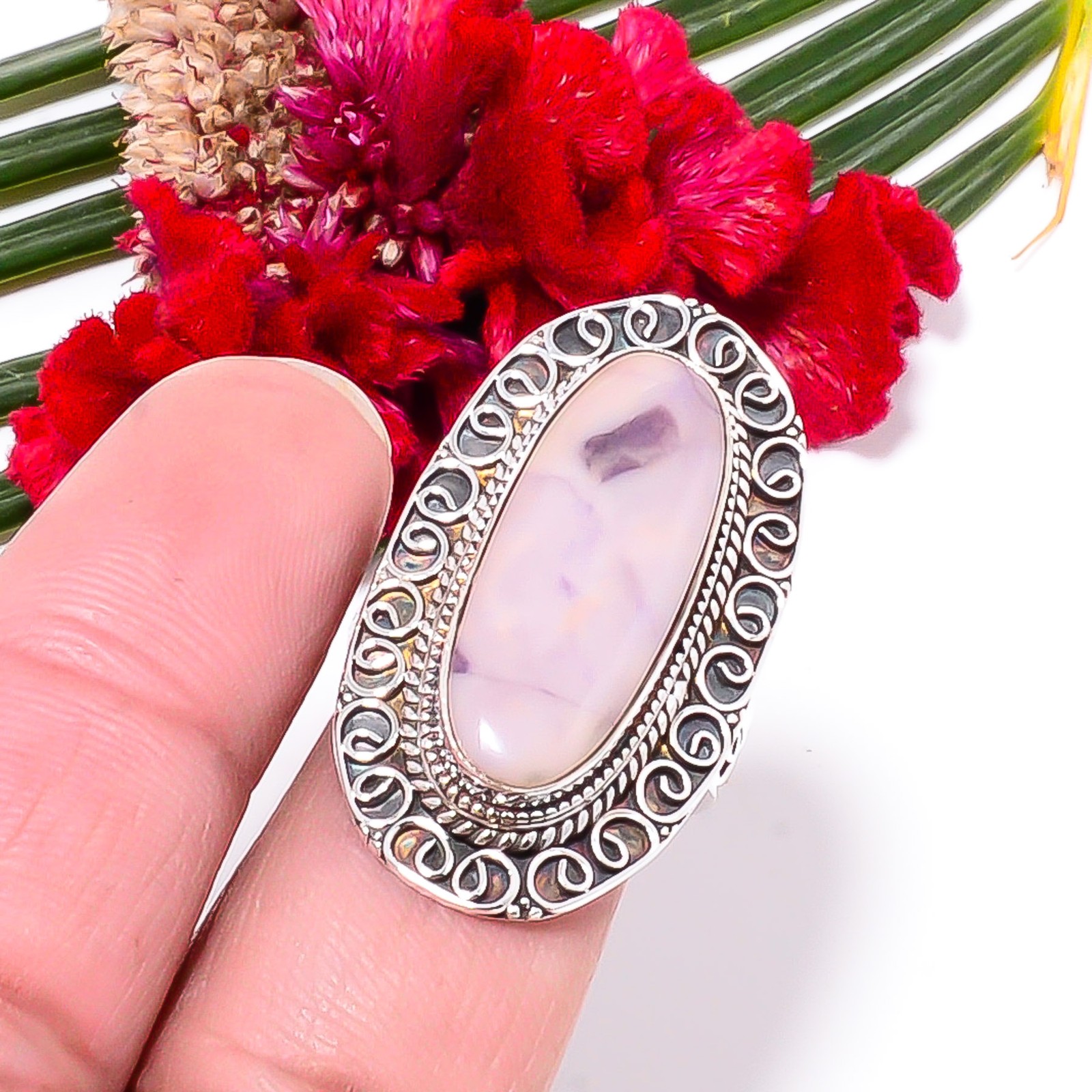 как выглядит Pink Opal Fine Art Oxidised 925 Sterling Silver Ring s.8.5 Sk44, Christmas Gift фото