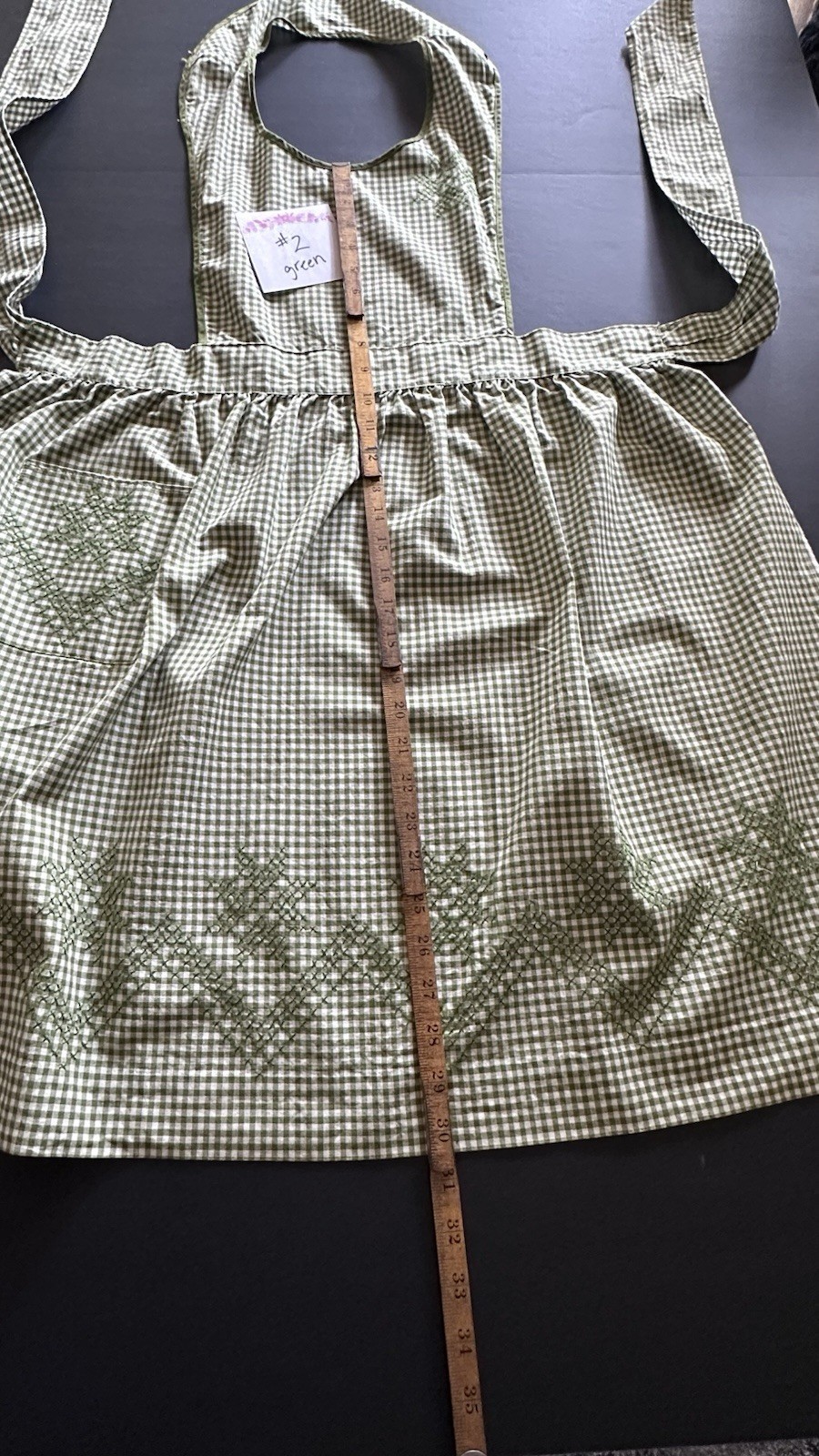 как выглядит Vintage Ladies Apron Green Checked Needlework Handmade Boho, Farm, Cottage фото