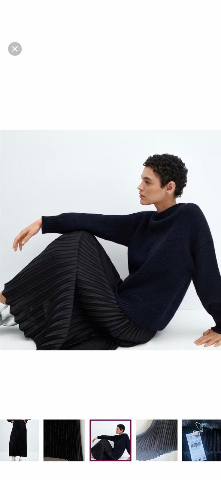 как выглядит NWT Mango Black Satin Pleated Midi Skirt Size S фото