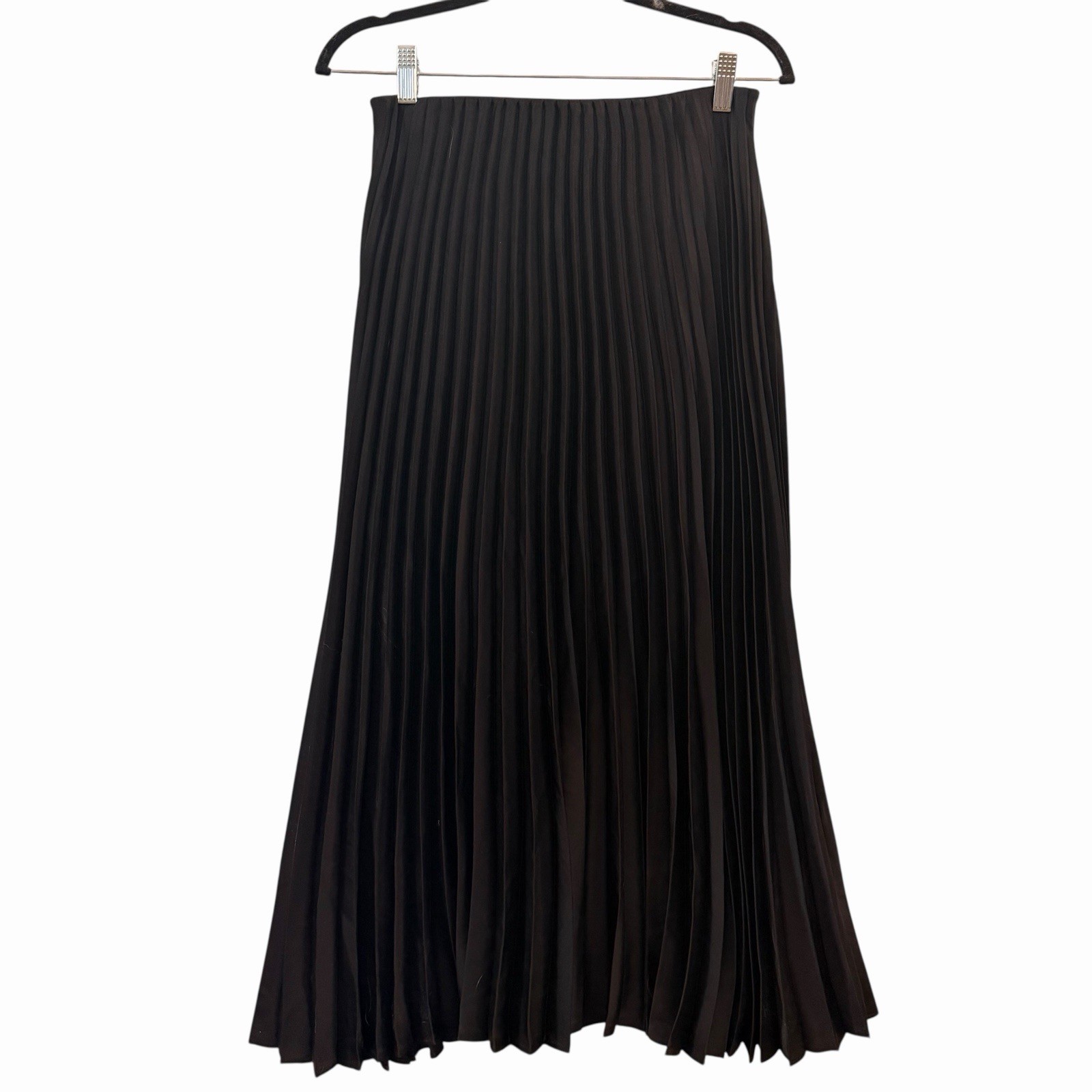 NWT Mango Black Satin Pleated Midi Skirt Size S