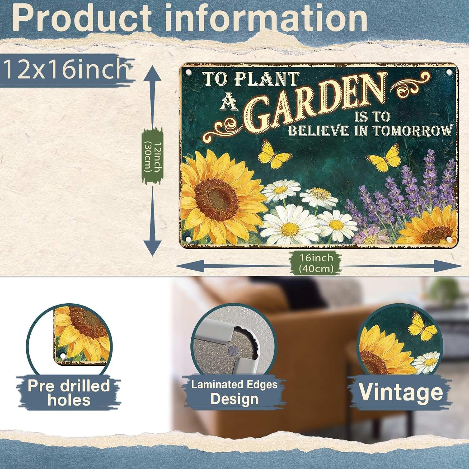Quick & Easy Outdoor Installation: With pre-drilled holes,this garden tin sign mounts easily on fenc