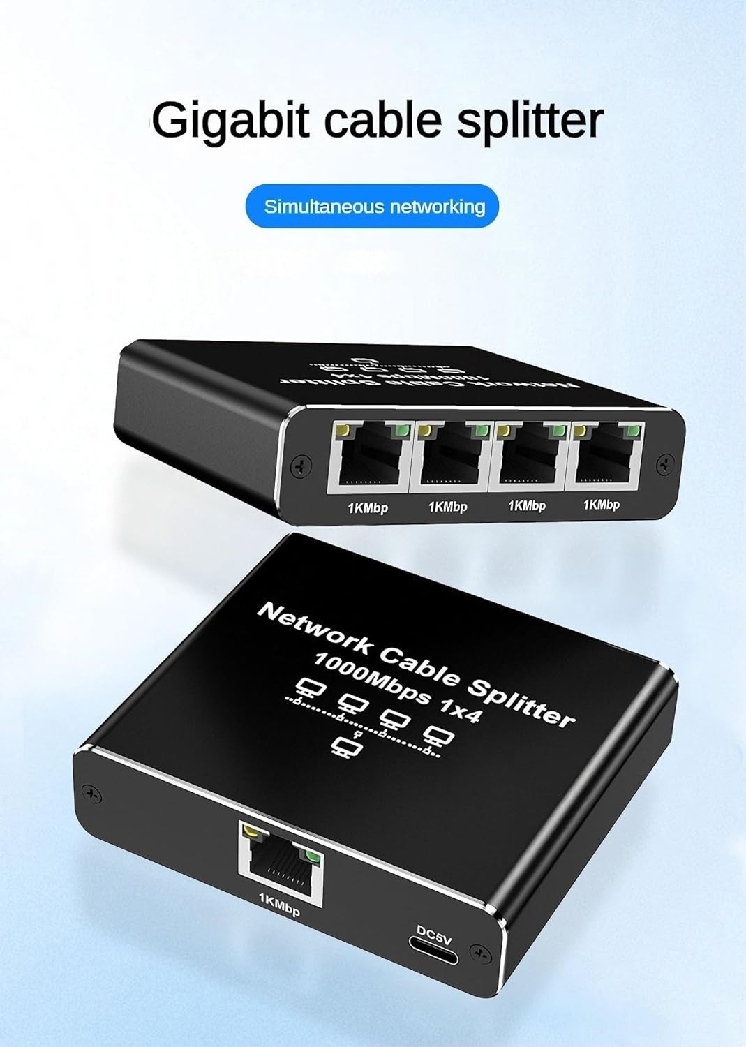 RJ45 Gigabit Ethernet Splitter 1000Mbps LAN Network Internet 1 to 4 Out Adapter