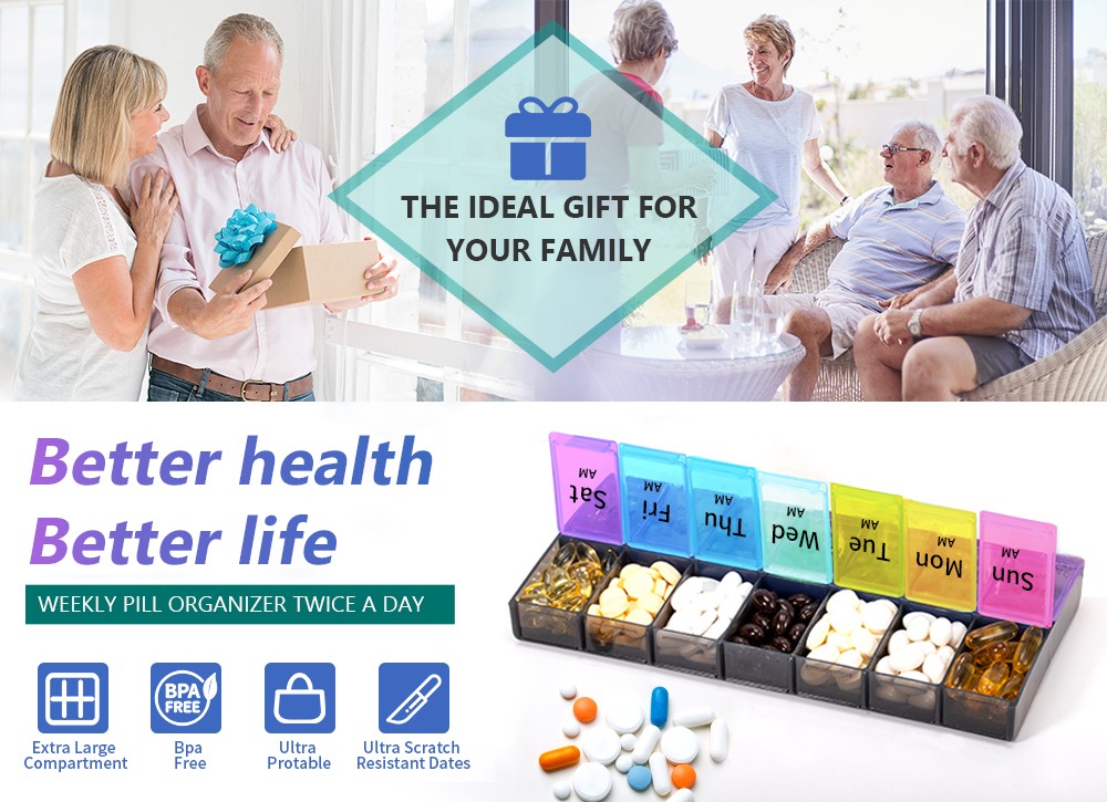 Extra Large Weekly Pill Organizer 2 Times A Day, 7 Day Pill Box, XXL Compartment