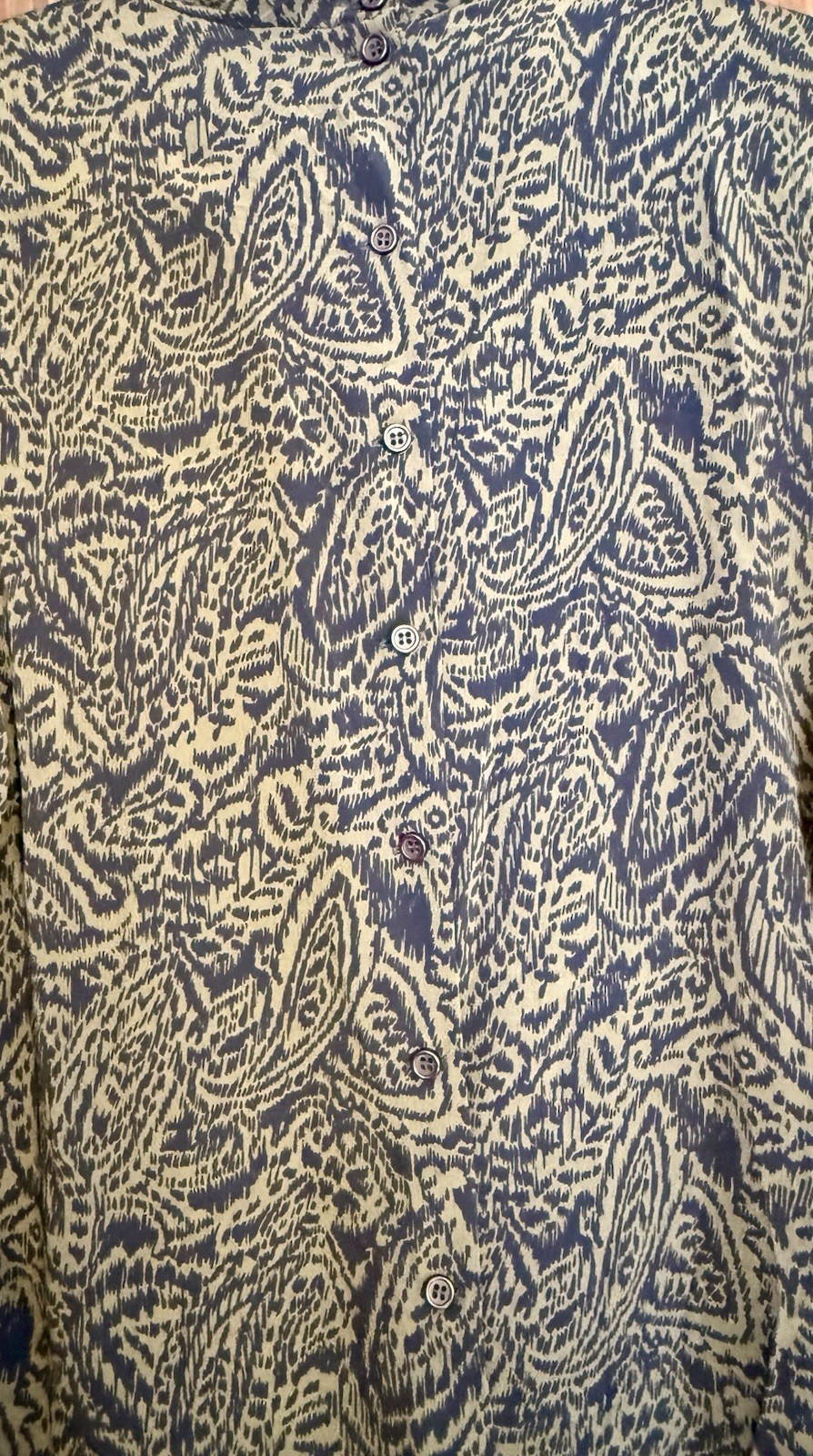Vintage 80s Christian Dior High Neck Button Back Brown And Black Blouse Size 10