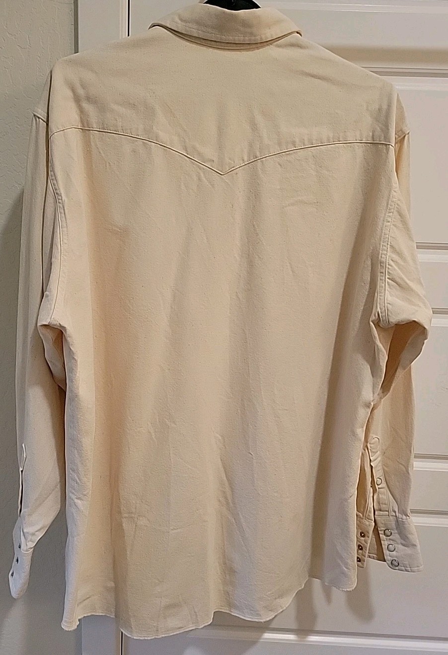 как выглядит Wrangler X-Long Tails Beige Pearl Snap Rodeo Cowboy Western Shirt Sz 17 1/2 - 35 фото